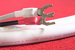 Both cables are exceptionally good in their price class. They combine seemingly antagonistic features like smoothness, silkiness, details, and dynamics. Both are suitable for long-term listening sessions, because they do not fatigue the ears with anything. Velum shows that it can be done better, in places even much better, but it is money that can give us the improvement. Tunami Nigo shows the something, that makes us not wanting to unplug the Japanese from the system, even knowing that the Velum speaker cable is better. I say even more - in systems that are not top of the line, but already hi-end, Oyaide may sound better than Velum, which is merciless for errors in the sound path, even the small ones. It is an example that a complete system must be balanced, that you have to take care of it's every element, and better does not always mean "better". BUDOWA In both Oyaide cables materials conform to the EU directive RoHS were used, which implies minimizing of use of harmful materials, like for example lead or halogens. The interconnect is semi-balanced, in the RCA version the shield is connected to the ground wire on one end, and the signal flows in two identical wires inside. The outside coat was prepared by the company Furukawa, just like the material for the conductors. It is PCOCC-A copper, a single long crystal OFC, with polished surface. The cables are made of tightly wound wires - every effort was made to eliminate empty spaces between them. The isolation is made from foamed polypropylene. The cable has 120 Ohm native impedance, so it can be used for transmitting digital AES/EBU signal (PA-02 is available confectioned annotated as TR - 'terminated' - or from spool). The plugs are manufactured by Oyaide and although they look quite common - they plug in and out splendidly. The loudspeaker cable Tunami Nigo has a similar structure, meaning it has a shield and two internal conductors, but it has a much larger diameter. Two things contribute to this: larger diameter of the conductors and large amount of isolation material, which is also acting like a dampener, diminishing vibrations. The isolation materials is made from polyethylene, laid under high pressure, in a process developed by Oyaide, filling all empty spaces. Besides outer foil made from PCOCC-A a third conductor is added, running between the isolation layers, with the purpose of neutralizing the loads that can exist between the layers. The cable is outfitted with Oyaide SPYT spades, made from polished OFC copper, covered with thick layer of silver and palladium on the outside.