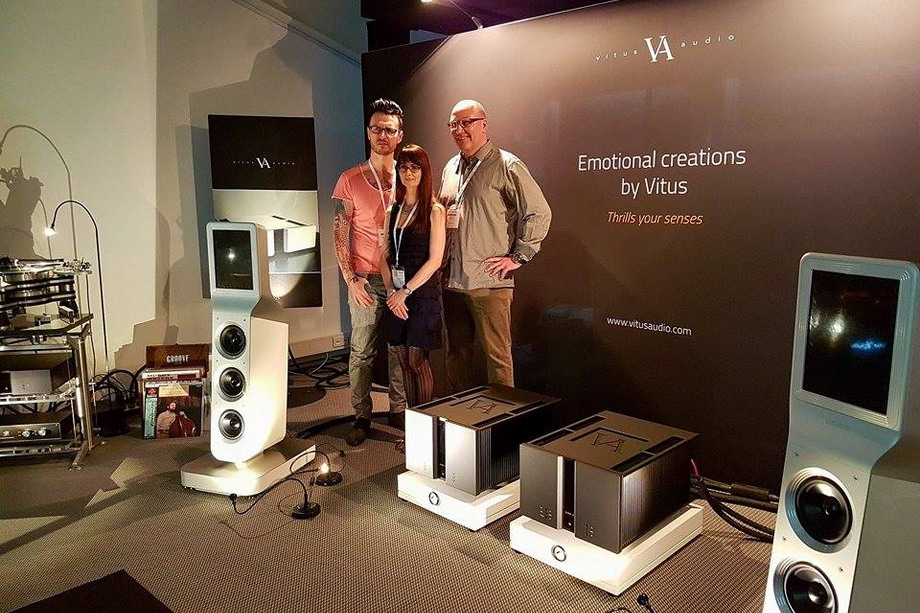 - To było duże wydarzenie: produkty Vitus Audio stały na podstawach i nóżkach Franc Audio Accessories; na zdjęciu, od prawej: Ole Vitus, jego żona Brita oraz Paweł Skulimowski, właściciel FAA.