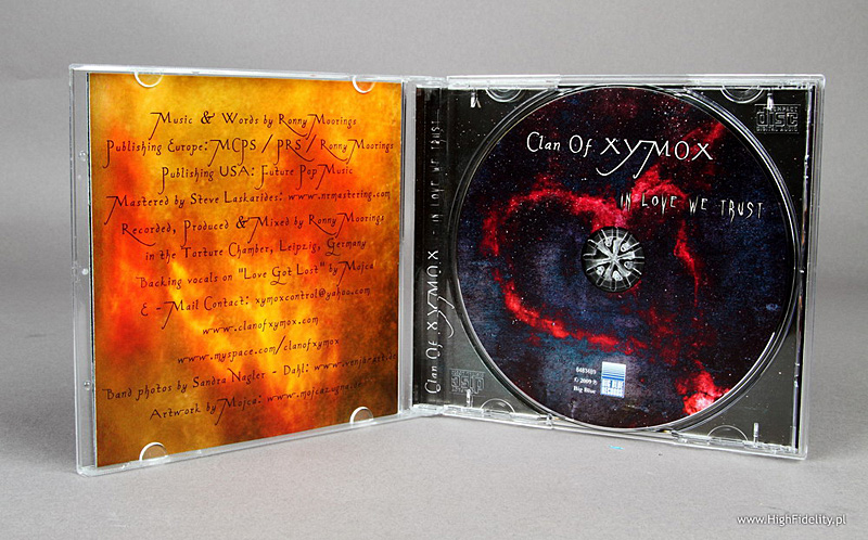 Clan of Xymox In Love We Trust Czas nagrania: 2009 (?) Miejsce nagrania: Torture Chamber, Lipsk, Niemcy Realizator nagrania: Roony Moorings Mix: Roony Moorings Mastering: Steve Raskarides Produkcja: Roony Moorings Wydawca: MCPS/PRS/Ronny Moorings/Big Blue Records, 8483489 Szczegóły: klasyczne wydanie „pudełkowe”, edycja polska Data wydania: 18 sierpnia 2009 Format: CD Oficjalna strona grupy: Clan of Xymox Tekst: Wojciech Pacuła |