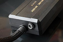 Kabel DSIX/1.0 – Digital Signal Isolation eXciter – Acoustic Revive to nieco inna bajka. Pochodzący z japońskiej manufaktury interkonekt służy do przesyłu sygnału cyfrowego, zaś założona nań puszka zawiera układ aktywny, który znajduje się w torze sygnału. Zasilaniem zajmuje się zasilacz ścienny, jednak nie mamy żadnej informacji (np. w postaci diody), o tym, czy napięcie jest podłączone czy nie. Najważniejszym celem patentu jest izolacja komponentów (to dlatego tak popularne są w studiach różne odmiany optycznych kabli cyfrowych), zapewniana tutaj przez transformator separacyjny. To jednak nie koniec. W puszcze znajduje się bowiem także układ aktywny, zamieniający sygnał z single-ended na zbalansowany, z „pływającą” masą, używając do tego dwóch osobnych wzmacniaczy pracujących w push-pullu. Jak pisze się w materiałach firmowych, w układzie zastosowano wysokiej jakości elementy, takie jak rezystory Beyschlag i kondensatory OS Sanyo. Możliwy jest także upgrade układu poprzez wymianę zasilacza na wolnostojący, rozbudowany układ DPS-1. Zabiegi te mają znacząco zmniejszyć jitter, polepszyć szybkość narastania sygnału, ustalić stałą impedancję wyjściową 75 Ω (co ciekawe, podaje się, że impedancja wejściowa to 47kΩ) oraz izolować galwanicznie transport i przetwornik.