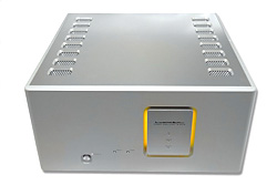 Końcówka Luxmana jest genialnym urządzeniem. Nie gra ani jak tranzystor, ani jak lampa. Z jednej strony jest ciut za najlepszymi wzmacniaczami tych obozów, jednak tamte skupiają się raczej na swoich mocnych stronach, a Luxman potrafi zagrać wszystko na równie wysokim poziomie. Problemem jest to, że wymagany jest wysokiej klasy przedwzmacniacz. Ale to chyba dobrze – wbrew pozorom. Fabio Camorani, właściciel i konstruktor firmy Audionemesis (test DC-1 TUTAJ, PH-1 TUTAJ), podczas wizyty u mnie w czasie ostatnich wakacji, zdefiniował swój pogląd na to, który sprzęt jest lepszy, a który gorszy, Jego zdaniem rozróżnienie jest proste: to urządzenie, przez które słychać więcej zmian przed nim, w tym przypadku chodziłoby o płyty, odtwarzacz/gramofon i przedwzmacniacz/kable, jest lepsze. I chyba jest coś na rzeczy. Może się zdarzyć, ze pewne rzeczy są uwypuklane, jak w urządzeniach studyjnych, które są często jak szkło powiększające i wyolbrzymiają pewne zmiany, jednak można przyjąć, że to jedna z ważniejszych cech różnicowania produktów audio. Zarówno pod tym kątem, jak i pod kątem czystej przyjemności ze słuchania muzyki jest wzmacniacz Luxmana czymś szczególnym. I kto wie, być może to jest końcówka, której szukałem... BUDOWA Luxman M-800A to potężna, niesamowicie ciężka bryła metalu, ważąca niemal 50 kg. Jego zewnętrzna powłoka jest wykonana z niesamowitą dbałością o szczegół, z bardzo grubych płyt aluminiowych, pod którymi są grube płaty stalowej blachy. Krawędzie przedniej ścianki są z boku zaokrąglone, co nadaje jej lekki wygląd. Najważniejszym elementem plastycznym tej części jest jednak wydzielony fragment z podcięciami, które jarzą się żółtawym światłem. Okazuje się, że jest to linijkowy bargraf. Ponieważ nie ma on żadnego praktycznego zastosowania (nie jest wyskalowany), jeśli kogoś denerwuje, może być wyłączony. Płytka wewnątrz wydzielonej części jest wykończona inaczej niż reszta obudowy – polerowane i satynowane aluminium – ponieważ jest drapana, odbija się wyraźnie na tle czołówki. Znajdziemy tam trzy diody – jedna wskazuje, czy wzmacniacz został mostkowany, kolejna (niebieska) czy wybraliśmy wejście zbalansowane, a trzecia (żółta) wskazuje standby. Na ściance mamy jeszcze tylko wyłącznik standby oraz dwa guziczki – jednym wybieramy między wejściem XLR i RCA, a drugim wyłączamy podświetlenie czołówki.