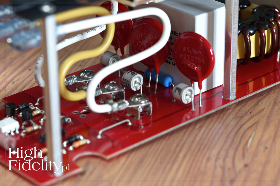⸜ Podzespoły w PF-2 SE Evo+ montowane są na płytce drukowanej Od strony technicznej postawiliśmy na srebro i skuteczniejszą filtrację. Specjalna Edycja wykorzystuje technologie i komponenty, stosowane w naszym, do niedawna flagowym, kondycjonerze PC-4 EVO+. Bezstratne szyny dystrybucyjne doprowadzające prąd do gniazd wyjściowych są wykonane z posrebrzanej miedzi o wysokiej przewodności. Podobnie wewnętrzne okablowanie – żyły robocze to grube przewodniki z posrebrzanej miedzi OFC w teflonowej izolacji. Nowy moduł filtrujący oparty jest na autorskich kondensatorach Gigawatt o zwiększonej , w stosunku do poprzednika, pojemności i skuteczności filtracji szumów. Tradycyjnie dla naszych konstrukcji, we wszystkich miejscach, w których występują połączenia skręcane, używamy specjalnych nierdzewnych i niemagnetycznych śrub. Obudowa ma takie same wymiary i kształt jak wersja standardowa, ale ze względu na inne elementy i przede wszystkim większe kondensatory, musieliśmy przekonstruować wewnętrzne chassis. Myśleliśmy również, aby wzorem kondycjonerów, zaoferować użytkownikom możliwość apgrejdu standardowej wersji PF-2 do wersji SE. Ze względu na szeroki zakres zmian i związany z tym duży nakład pracy, taka operacja musi być jednak odpowiednio wyceniona. Myślę jednak, że wprowadzimy taką opcję, a rynek i użytkownicy ją zweryfikują.
