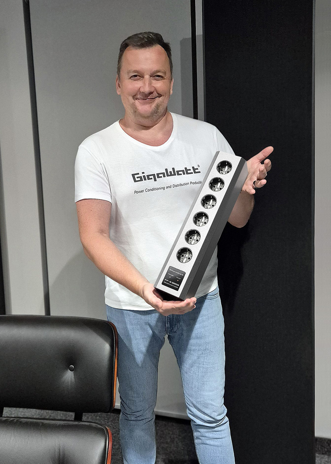 ˻ PREMIERA ˼ ⌈ Marka GIGAWATT, należąca do firmy P.A. Labs, to jedna z bardziej znanych polskich firm audio. Pod tą nazwą funkcjonuje już od 2007 roku, będąc jednocześnie bezpośrednim następcą innej firmy, Powe Audio Labs, założonej w 1998 roku. Łączy je osoba szefa i głównego konstruktora GigaWatta, ADAMA SZUBERTA, a także specjalizacja w zakresie produktów służących do poprawy jakości prądu, którym zasilamy systemy audio i wideo. To PREMIERA jej najnowszej wersji listwy napięcia zasilającego AC. ⌋ LISTWY NAPIĘCIA ZASILAJĄCEGO AC pełnią w systemie audio rolę „rozdzielaczy”, podobnie jak listwa komputerowa. Ich zadanie jest proste: mają być „węzłem” rozdzielczym dla napięcia zasilającego urządzenia. Czasem powierza się im także rolę filtracji i ochrony, wyposażając je w różnego rodzaju dławiki, kondensatory czy bezpieczniki. Kiedy rozrastają się i w miejsce rzeczywistej listwy, czyli podłużnego elementu z gniazdami zasilającymi, staje na półce urządzenie przypominające wzmacniacz – mówimy wtedy o kondycjonerach napięcia zasilającego AC.