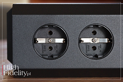 Zewnętrzna obudowa wykonana jest z grubej blachy stalowej, ale nieco innej niż ta, do której przykręcono gniazda zasilające. Jest ona od góry ścięta, przez co jest nieco mniejsza optycznie. Nie ma nóżek, stawiamy ją bezpośrednio na podłodze lub platformie. I są jeszcze dwie diody LED – biała i czerwona. Ta pierwsza – kiedyś w kolorze zielonym, wskazuje czy do listwy jest doprowadzane napięcie. Druga z kolei pokazuje błędnie doprowadzoną fazę „gorącą”. Aby to zmienić wystarczy przekręcić wtyk Schuko w gnieździe ściennym o 180⁰. |