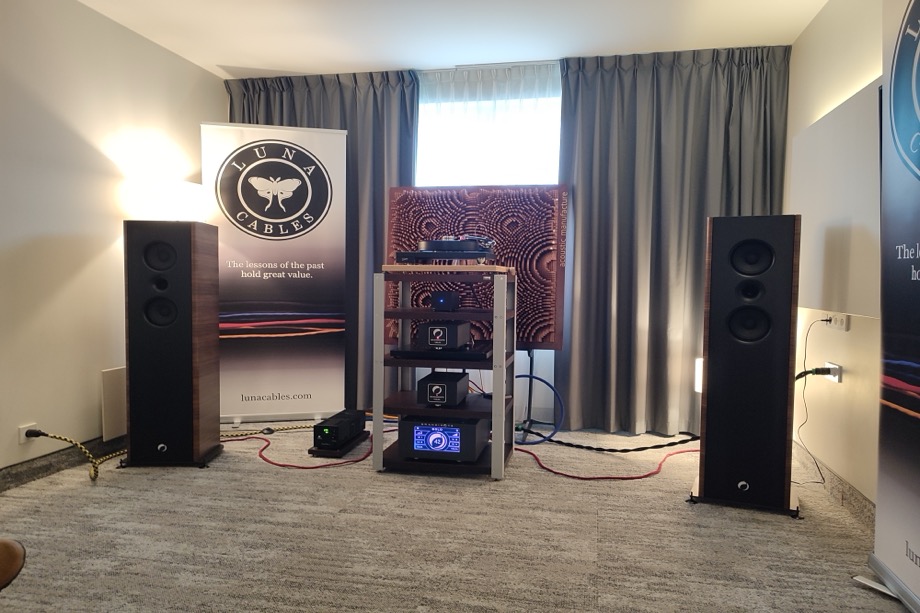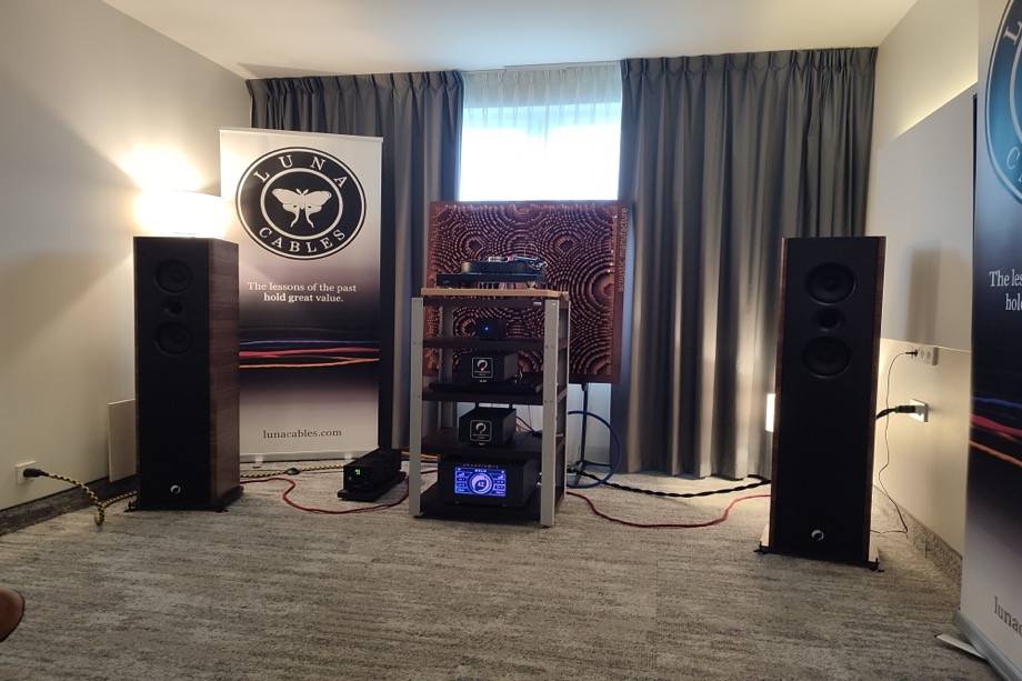 Nie zachwyciła mnie w tym roku prezentacja firmy Daniel Hertz i jej opatentowanej technologii C-Wave. Było poprawnie, ale dźwięk nie kupił mnie tak jak to było w zeszłym roku. W pokoju 102 swoją światową premierę miały głośniki IQ30 firmy Qualio Audio. Zestaw uzupełniała elektronika BonaWatt oraz gramofon Benny Audio.