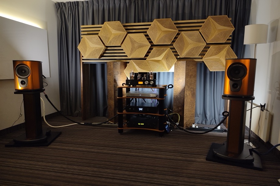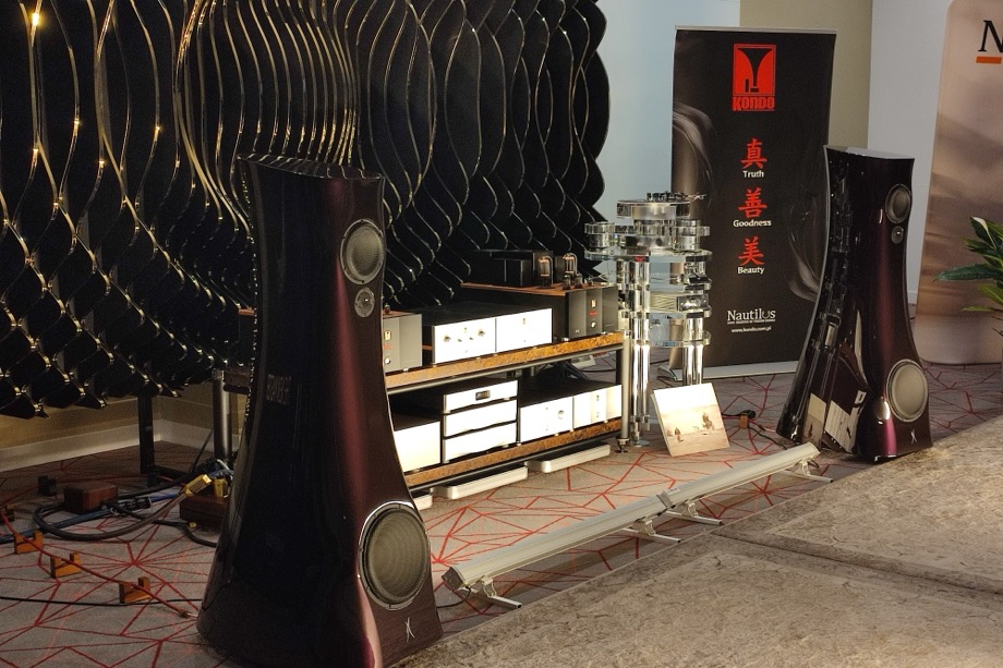 Główna prezentacja miała standardowo lokalizację na parterze hotelu i składała się z kolumn Amethyst, w pełni zbalansowanego systemu Magnetar linii SuperNova (200W monobloki KT150, przedwzmacniacz liniowy). Jako źródło wykorzystano DAC-a Lampizator Pacific oraz polskie kable i akcesoria KBL Sound.