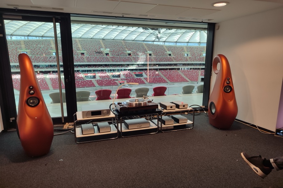 Podobnie, w pokoju obok od lat okupowanym przez miłośników analogowego grania. Tym razem jednak firma Kasoto Audio Equipment postawiła na odnowioną wersję kolumn Open Baffle pod nazwą OnWaTi BF oraz dźwięk cyfrowy dostarczany przez lampowy DAC, nowej polskiej marki Audio Navigator, oparty na legendarnej szesnastobitowej kości TDA1541A!
