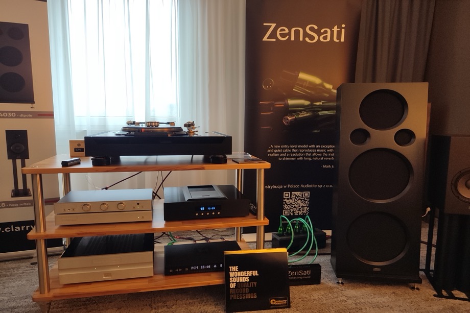 W sali Platinum 3 swoją prezentację miała Zikra Audio. Potężne, wysokoskuteczne kolumny z głośnikami tubowymi generowały dźwięk o sporym wolumenie przypominający prezentację głośników Western Electric z tegorocznych targów w Monachium. I tak jak pisałem wtedy, tuby albo się kocha, albo nienawidzi. Mnie ta namacalność dźwięku bardzo odpowiada. Salę obok swój system zaprezentowała firma Avatar Audio i o ile zawsze, odkąd sięgam pamięcią, w tym pokoju odpoczywałem, to w tym roku wdała się tam jakaś nerwowość w dźwięku. Chociaż mogło to też być moje całodniowe zmęczenie.