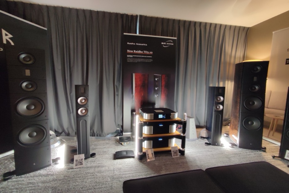 W pokoju Sisound odbyła się premiera nowej linii kolumn podłogowych Solidus X oraz Solidus M (konstrukcje ze wstęgami planarnymi i obudową zamkniętą). Całość napędzał wzmacniacz zintegrowany Staccato BU-01. Na szóstym piętrz swoją europejską premierę miały elektrostaty Vitorla firmy Popori Acoustics. To pierwsze kolumny tego typu, które dane mi było słyszeć podczas tej edycji wystawy, a patrząc na ofertę innych wystawców kolumn tego typu było naprawdę sporo.