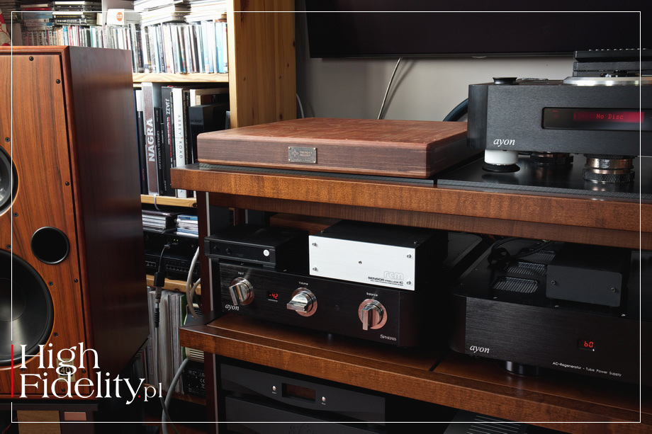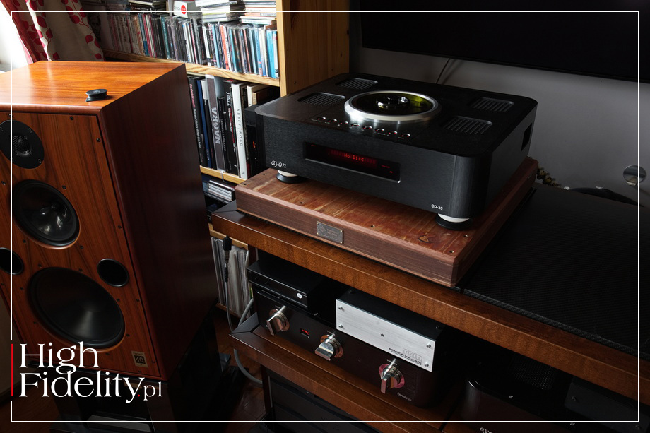 |  ① Kolumny: HARBETH M40.1 • → TEST ② Podstawki: ACOUSTIC REVIVE (custom) ③ Odtwarzacz plików & zegar taktujący SFORZATO DSP-05 EX & PMC-05 EX → TEST & dysk NAS/przełącznik LAN LUMIN L2 • → TUTAJ ④ Przedwzmacniacz: AYON AUDIO Spheris EVO • → TEST ⑤ Odtwarzacz Super Audio CD: AYON AUDIO CD-35 HF Edition No. 01/50 • → TEST ⑥ Wzmacniacz mocy: SOULUTION 710 ⑦ Stolik: FINITE ELEMENTE Master Reference Pagode Edition Mk II więcej → TUTAJ ⑧ Pasywny układ korygujący SPEC Real-Sound Processor RSP-W1EX • → TEST | |