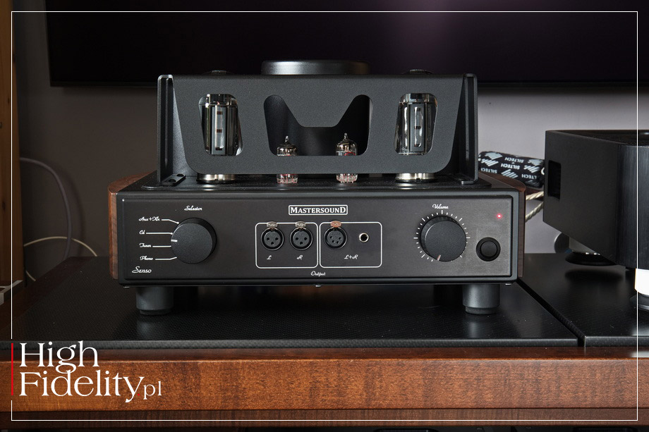 Wygląd i konstrukcja Senso jest typowa nie tylko dla tego producenta, ale generalnie dla wzmacniaczy lampowych. Obudowę wykonano ze sztywnych, giętych blach z aluminium, do których od przodu zamocowano płaski panel z naniesionymi opisami. Umieszczono na nim dwie gałki, zmiany wejść i siły głosu, a także trzy (a nawet cztery) gniazda słuchawkowe (patrząc od lewej): dwa trzypinowe (czyli klasyczne) gniazda XLR, osobno dla lewego i prawego kanału, 4-pinowe gniazdo XLR stereo oraz TRS 6,3 mm, czyli wtyk znany jako „duży Jack” (ciekawe, ale seksualne konotacje tej nazwy dawno się zatarły). O ile ostatnie z wymienionych wyjść podaje sygnał niezbalansowany, o tyle dwa pierwsze są zbalansowane. Jak to możliwe, skoro wzmacniacz Senso ma budowę single-ended, a więc z definicji niezbalansowaną? Otóż dlatego, że można nawinąć transformatory wyjściowe tak, aby automatycznie balansowały sygnał – to jedno z uzwojeń wtórnych – i równolegle podać sygnał niezbalansowany. Sygnał symetryczny pozwala lepiej wysterować słuchawki wyższą mocą, jest więc ostatnimi czasy preferowany w części urządzeń tego typu. Wspomniałem o selektorze wejść – Senso jest całkiem funkcjonalnym urządzeniem. Oferuje ono trzy wejścia RCA oraz jedno XLR. To ostatnie jest połączone równolegle z jednym z tych pierwszych. I jest również wbudowany, półprzewodnikowy przedwzmacniacz gramofonowy przeznaczony dla wkładek MM. Można więc za pomocą testowanego wzmacniacza zbudować niewielki, ale i rozbudowany system słuchawkowy. I nie musimy być ograniczeni wkładkami MM i MC HO, bo wystarczy dodać transformator step-up, aby korzystać z wkładek MC. Transformatory, jako się rzekło, są produkowane samodzielnie przez firmę Mastersound na nawijarce zaprojektowanej jeszcze dla założyciela, pana Cesare. Jak deklaruje producent, do ich produkcji używane są wysokiej klasy druty nawojowe z miedzi beztlenowej (OFC) oraz wysokiej klasy blachy o ziarnistej strukturze. Mają też mieć unikatową konstrukcję: zastosowano w nich „unikalną na skalę światową” technikę, która „przyczynia się do wyjątkowej jakości dźwięku”. Płytka z elektroniką pochodzi ze wzmacniacza zintegrowanego 211. Jednak tutaj zamiast lamp EL34 mamy mocniejsze KT120. Lampy są kupowane w dwóch miejscach. KT120 to lampa (niestety) rosyjska – niemal wszystkie nowe warianty lamp KT produkowane są w jednej fabryce ulokowanej w Saratowie (Saratów znajduje się w europejskiej części Rosji, nad rzeką Wołgą) i sprzedawane są przez właściciela, firmę New Sensor Company, pod marką Tung-Sol; swoją wersję mają również Chińczycy. Z kolei lampa sterująca jest „nasza” i jest dostarczana ze Słowacji. JJ Electronics wykonuje specjalną wersję podwójnej triody ECC82, ECC802S będący jej niskomikrofonowym wariantem o długich anodach, charakteryzującej się długowiecznością. „S” w jej nazwie oznacza „special quality”, co w przypadku lamp Telefunken i nowoczesnych lamp JJ przekłada się na wyjątkowo długą żywotność (ponad 10 000 godzin).