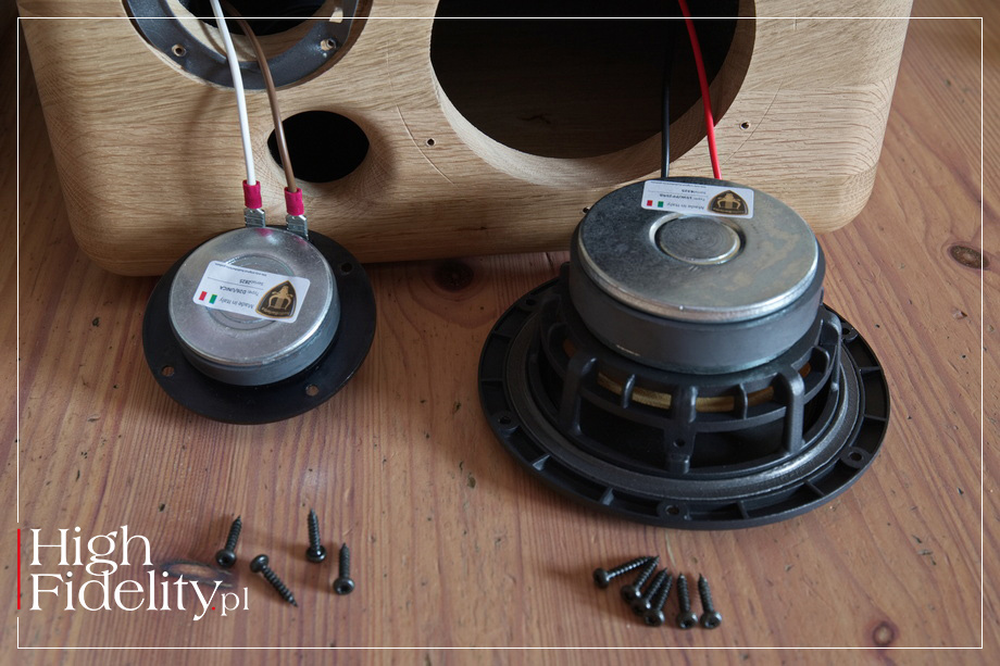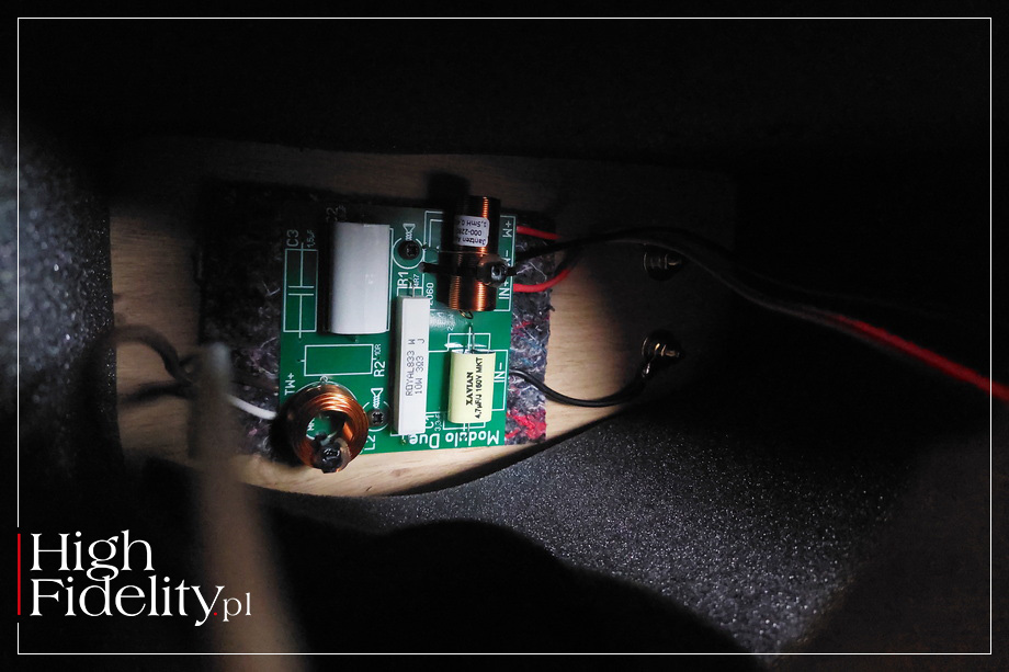 Równie ważne jak obudowa są zastosowane tu przetworniki. W podanych na stronie www producenta „ekskluzywnych rozwiązaniach” zastosowanych w modelu Unica zostały one umieszczone najwyżej w hierarchii. Obydwa głośniki noszą logo AudioBarletta i są produkowane dla Xaviana we Włoszech w systemie OEM. Zostały opracowane wspólnie przez Roberto Barlettę i fabrykę. Wykorzystują one inne zawieszenia, kosze i membrany niż głośniki firmy Scan-Speak, ale mają wspólne systemy napędowe. Historycznie rzecz biorąc, Xavian stosował różne kombinacje przetworników w zależności od modelu głośnika. W niektórych były to przetworniki Scan-Speak, a w innych głośniki z logo AudioBarletta. Scan-Speak stosowany był zarówno w klasycznych modelach, jak i głośnikach z wyższych serii. Z kolei AudioBarletta był „zarezerwowany” dla flagowych modeli, takich jak Orfeo i Ambra Esclusiva, ale również dla wybranych głośników z niższych serii. Po tym, jak duński producent zaprzestał produkcji niektórych modeli, Xavian zaczął stosować własne rozwiązania w niemal wszystkich modelach kolumn. W modelu Unica zastosowano miękką kopułkę o średnicy ø 26 mm i głośnik nisko-średniotonowy z powlekaną papierową membraną, mającą średnicę ø 150 mm. Kopułka ma membranę z powlekanego jedwabiu i neodymowy magnes. Jego front wykonany jest ze sztywnego plastiku. Z kolei kosz większego głośnika to odlew ze stopu aluminiowo-magnezowego. Ma on również solidny system magnetyczny, w którym zastosowano miedziany ring poprawiający liniowość i zmniejszający zniekształcenia. Obydwa głośniki zostały przykręcone bezpośrednio do przedniej ścianki za pomocą wkrętów. Podział między nimi ustalono przy częstotliwości 2490 Hz, a więc blisko 2500 Hz, które pan Barletta wybiera zazwyczaj dla swoich konstrukcji dwudrożnych. Sygnał jest dzielony w niewielkiej zwrotnicy, zmontowanej na płytce drukowanej i przykręconej do tylnej ścianki za pośrednictwem miękkiego filcu. Zastosowano w nim tylko pięć elementów, firmy Jantzen, z polipropylenowym kondensatorem i powietrzną cewką dla głośnika wysokotonowego. Ma to dać szybką odpowiedź impulsową, czemu ma pomóc również niemal zupełny brak wytłumienia. Jedynie na trzech bocznych i tylnej ściance przymocowano niezbyt grube płaty gąbki. Aranżacja ta ma pomóc również we współpracy z szeroką gamą wzmacniaczy. Po odsłuchach mogę powiedzieć, że to prawda, choć warto zadbać o to, aby były one wydajne prądowo, mimo że nie muszą być bardzo mocne.