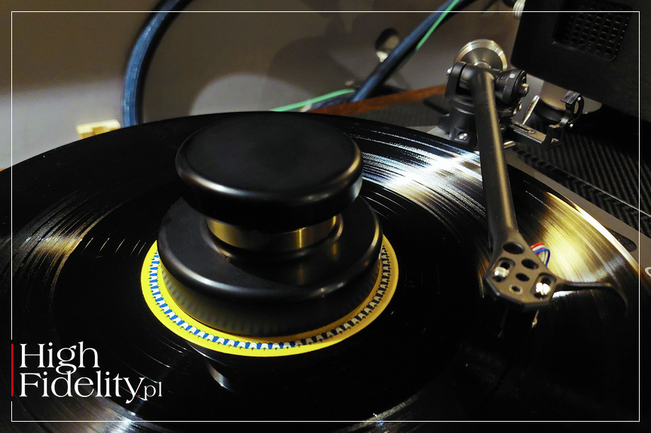 DOCISK DO PŁYT firmy Acoustic Revive został wykonany z duraluminium i mosiądzu, różnych metali wybranych ze względu na ich wyjątkowe właściwości rezonansowe. Po spodem ma „precyzyjnie zaprojektowane”, jak czytamy, geometryczne rowki, które – jak zapewnia producent – „rozpraszają drgania na całej powierzchni”. Takie same rowki znajdziemy w jego podkładkach RKI-5005. Od spodu wklejono trzy „rezonatory” z dymnego kwarcu. Wewnątrz znajduje się „firmowa” mieszanka minerałów. Docisk PS-DBLP był przeze mnie testowany zarówno z gramofonem Air Force IV, jak i Rega P8. Trzpień tego pierwszego jest stożkowaty i węższy niż zwykle, dlatego docisk nie był idealnie centryczny. A jednak dzięki doskonałemu sterowaniu nie odbiło się to negatywnie na dźwięku. Generalnie jednak PS-DBLP powinien być stosowany z trzpieniami o standardowej średnicy. Co powiedziawszy dodam, że w obydwu przypadkach docisk ten dźwięk zmieniał. Wprowadza on do przekazu porządek. Jeśli dany gramofon już oferuje uporządkowany dźwięk, to z Acoustic Revive będzie on jeszcze większy. Choć bez niego niczego mi w obydwu gramofonach nie brakowało, to jego postawienie na płycie wyraźnie korygowało separację instrumentów stronę większej wyrazistości. Ale i gęstości. Choć wydawałoby się, że te dwa elementy się wykluczają, tym razem tak nie było. I to bez wsłuchiwania się czy intensywnego poszukiwania.