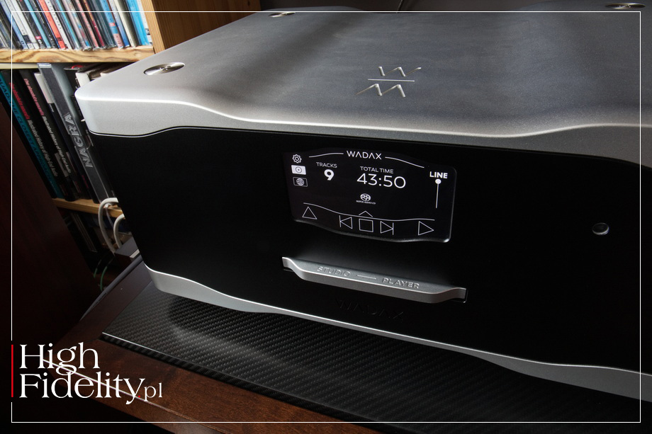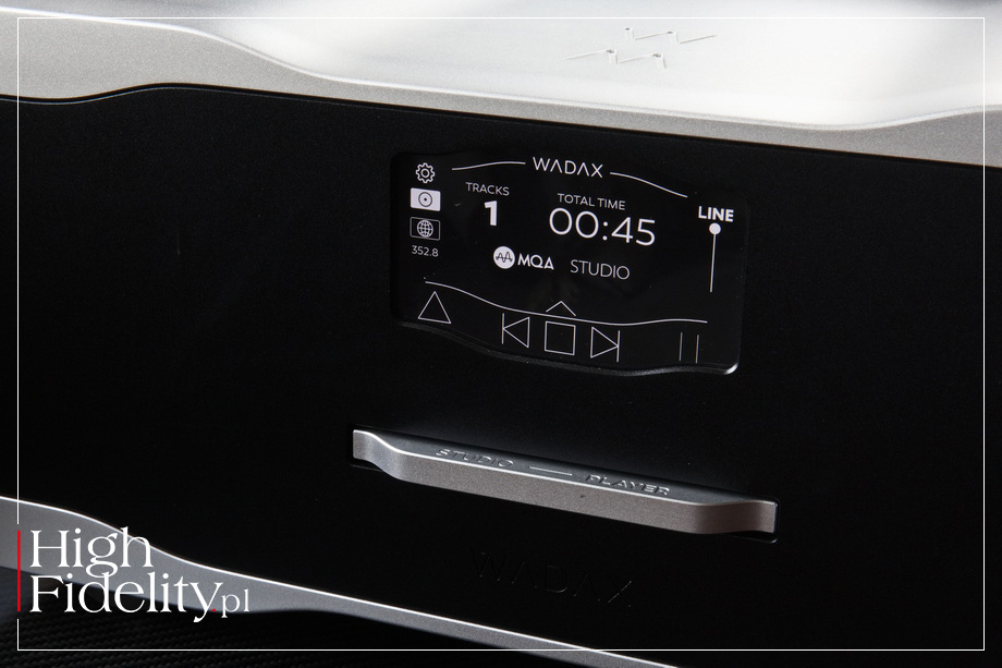 ⸜ Wadax, the company, → WADAX.eu, dostęp: 29.12.2025. I to syn przeniósł te doświadczenia do domeny cyfrowej. Rozpoczął klasycznie, od analogu, jednak punkt dojścia był związany z kodowaniem zerojedynkowym. Tak narodziła się firma Wadax. ▓ Studio Player STUDIO PLAYER jest złożonym produktem (firma stylizuje jego nazwę na Studio • Player). Jego podstawą jest coś, co można nazwać odtwarzaczem SACD – to pełnoprawne urządzenie tego typu. To jednak również odtwarzacz CD oraz MQA-CD. Wszystkie te trzy funkcje są z sobą powiązane, a jednak wymagają odmiennego podejścia. Studio Player jest jednak czymś więcej – to również odtwarzacz plików. W jednej obudowie otrzymujemy więc dwa produkty. Za jego pomocą odtworzymy płyty SACD oraz pliki i będziemy mieli również możliwość zagrania muzyki z dwóch kolejnych formatów – CD i MQA-CD. CO jest naprawdę fajne i w czym nie chodzi o oszczędność przestrzeni. Jak za chwilę zobaczymy, Studio Player może być rozbudowany do sporej „wieży”. Odtwarzacz należy do niższej z dwóch serii tego producenta, Studio. Jego podstawowe układy zostały jednak wyprowadzone z referencyjnej serii Atlantis. Jej komponenty zostały pokazane po raz pierwszy w 2017 roku na targach High-End w Monachium: Atlantis DAC, Atlantis Server i Atlantis Transport. Były to pierwsze produkty tej firmy wyposażone w układ musIC. Jest to kolejna wersja układu opracowanego jeszcze w 2004 roku (czyli w roku, w którym powstał nasz magazyn – przypadek?...) musIC • MUSIC TO KOŚĆ FPGA (czyli programowalna), w której dokonuje się obliczeń przewidujących błędy i nieliniowości występujące pod obciążeniem. Aby je zlikwidować algorytm generuje sygnał odwrotny (dokładne przeciwieństwo przewidywanego błędu) do strumienia wejściowego, zanim dotrze on do przetwornika DAC.
