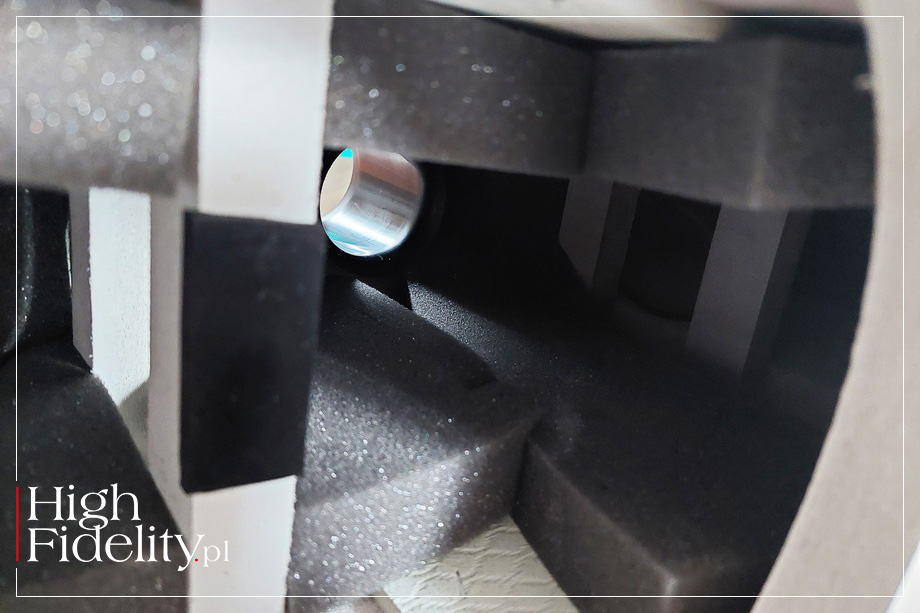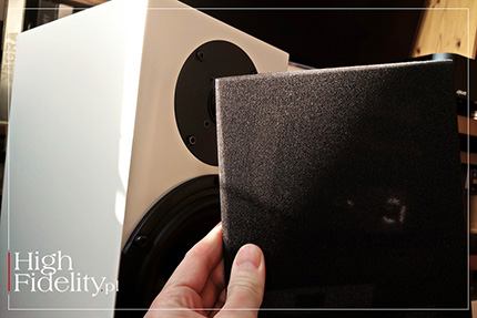 ⸜ Tamże. W A4.2 zastosowano zupełnie nową miękką kopułkę wysokotonową o średnicy 27 mm z szerokim zawieszeniem i dużą tylną komorą. To wykonywana dla Spendora wersja katalogowego głośnika firmy SEAS. Niskie i średnie tony to wciąż domena, znanego z poprzedniej wersji serii A, 18-centymetrowego przetwornika EP77 z odlewanym koszem i membraną z polipropylenu. W jej centrum widać nieruchomy stożek fazowy mający wyrównać odtwarzanie między tym głośnikiem i kopułką.