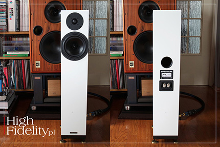 Jak zapewnia producent, pasmo jest dzielone przez „udoskonaloną zwrotnicę” zaprojektowaną tak, aby „zapewniała bardziej otwarte, dynamiczne i naturalne odtwarzanie wysokich częstotliwości”. Okablowanie wewnętrzne jest, jak na producenta kolumn bardzo dobre. Są to kable FS-16 firmy Van den Hul, plecionka ze stopu miedzi, cynku i srebra. Sygnał do kolumn doprowadzamy przez pojedyncze złocone gniazda zagłębione w wytłoczce z plastiku. Łatwo w nie wpiąć kable z wtykami bananowymi, natomiast trudniej mocno zakręcić kable z widełkami. Obudowa została wykonana z płyt MDF i jest lakierowana lub okleinowana od wewnątrz i od zewnątrz. Środek został wzmocniony wieńcem, również z płyt MDF, na którym opiera się magnes głośnika nisko-średniotonowego. Po bokach zamocowano maty z Sorbotanu, a wszystkie ścianki dodatkowo wyłożono dwoma rodzajami pianki. Tego rodzaju połączenie, to jest gruba mata z boku wypełnienie z pianki, znamy z klasycznych konstrukcji BBC, w tym LS3/5A. Od spodu dokręcono do kolumn czarne cokoły, również z MDF-u, a do nich wkręca się stalowe, standardowe kolce. Te nie są jednak mocowane bezpośrednio w podstawie, a w metalowych krążkach i nie centralnie, a z ofsetem. Dzięki temu kolce znalazły się przy samej zewnętrznej krawędzi kolumn, a jednocześnie są stabilne. Do kompletu mamy mocowane magnetycznie maskownice. Producent podkreśla jeszcze jedną ważną rzecz na którą warto zwrócić uwagę: kolumny zostały zaprojektowane i – przede wszystkim – wyprodukowane w Wielkiej Brytanii. To nie jest przypadek typu: „Designed in UK, Made in China”, naprawdę bardzo częsty. |