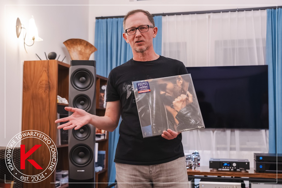Moje plany posypały się już po fazie inicjalnej, to jest po odsłuchu strony A z oryginalnego wydania płyty Faith. Posypały się, ponieważ wzbudziła ona tak wiele emocji, pobudziła do tak zaciętych dyskusji, że moglibyśmy tak rozmawiać do północy. Musiałem więc w pewnym momencie zakończyć tę część i przejść do porównania utworów ze strony B – oryginalne wydanie (tym razem egzemplarz dla radiowych DJ-ów „Not for sale”) vs podwójny album na czarnym winylu, a następnie na podwójnym kolorowym. Na nic więcej nie starczyło nam czasu. Z czasem się rozkręcaliśmy, a w czasie spotkania były tańce, śpiewy, modlitwy i załamywanie rąk (zapis tej części w galerii). I deptanie świętości, jaką dla mnie i kilku innych uczestników spotkania jest omawiany album. Ale o to właśnie w muzyce chodzi, o emocje. I ‖ WYDANIE ORYGINALNE TOMEK HATYLAK ⸜ Radio 357, KTS • Ja się, kochani, wyrywam do odpowiedzi, ponieważ to jest dla mnie niezwykle emocjonalne i intelektualnie istotny album. I chyba po raz pierwszy mam wrażenie, że mi „dostaje” do waszych rycerskich zbroi, ponieważ mówimy tu o muzyce, którą znam, uwielbiam i której słucham nie tylko dla dźwięku. Patrzę więc na to, co robi w tym miejscu z wami i myślę sobie tak: to jest przepiękna muzyka i wspaniale się tego słucha. Nie wiem, co przed nami, ponieważ znam nowy remaster tylko z CD, chociaż mam płytę na oryginalnym winylu. Mam jednak wrażenie, że tu, z pierwszym wydaniem, słychać niedostatki lat 80. i że to, co te remastery wydobędą – obiecuję wam – to znacznie więcej informacji, ciepła i siły R&B. Druga myśl jest taka, że między Father Figure i One More Try jest jedna fundamentalna różnica – syntetyczny i żywy bas. Gdybym miał powiedzieć, która z płyt jest tak dobrze skomponowana, że od „strona pierwsza, utwór pierwszy” – jak mawiał Piotr Kaczkowski – aż do ostatniego dźwięku brzmi doskonale, to byłby to chyba właśnie Faith jako pierwsza płyta w historii muzyki popowej. Kropka.