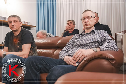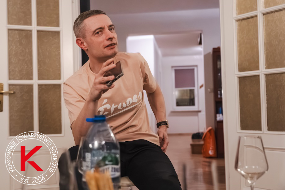 TOMEK HATYLAK • Nie wiem, jaki jest zamysł autorów tego spotkania, ale – moim zdaniem – ważne jest to, co z tego zrobili teraz. To, że to nie jest najlepiej zrealizowana płyta, to jest dość oczywiste. WOJCIECH PACUŁA + TOMEK L. ⸜ KTS + cohortes • (chórem) Nieeee, to nie jest tak (każdy osobno dodawał coś o zajebistości, fantastyczności itp. – w szumie głosów trudno wyłapać dokładnie kto i co). JAREK • Bawię się teraz współczesną kopią syntezatora Mooga. TOMEK L. • No to już pogadaliśmy, puśćmy napisy: „pół godziny później…” JAREK • Kochany, bas z tego urządzenia, słuchanego na słuchawkach jest niebywale lepszy niż to, co jest tutaj. To mi się nie skleja, jak Bolek z Lolkiem, jak Żwirko z Muchomorkiem… |