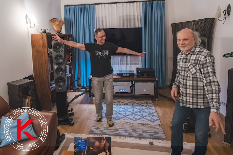 TOMEK L. • Rzeczywiście jest tak, że first press to przeżycie i trzeba do tego inaczej podchodzić. Moja krótka przygoda z winylem pokazała mi, że jeśli to było wydanie Mobile Fidelity czy Analogue Productions to te płyty świetnie brzmiały, ale tylko pierwsze tłoczenia miały powietrze, dynamikę, które mi się podobały. WOJCIECH PACUŁA • Przeżywam tę płytę przy każdym odsłuchu, ponieważ kupiłem jej polską wersję w 1988 roku, kiedy tylko Polskie Nagrania ją u nas wydały. Jest ona wypalona w mojej głowie. Uważam George’a Michaela za wizjonera i to, jak tę płytę przygotował jest dla mnie jakimś takim odpryskiem geniuszu. To dla mnie ważny album. Razem z Bad i Music for the Masses. To odtworzenie też mi się podobało. Uważam tę płytę za wybitnie zrealizowany kawał popowej muzyki. W tym pomieszczeniu nie grało to tak dobrze, jak poprzednio, przy odsłuchu płyt Crystal Disc. Moim zdaniem nowe wzmacniacze w tym systemie każą robić coś kolumnom, czego te nie potrafią, jakby doszły do ściany. To dlatego płyta wydaje się przebasowana. Znam ją z różnych pomieszczeń, ponieważ swego czasu jeżdżąc z kolumnami Pylon Jade 20 HF Edition po Polsce puszczałem ją w wielu salonach audio. Dla mnie to był za każdym razem pokaz możliwości magnetofonu Mitsubishi X-850, który dzisiaj kosztowałby około 650 000 USD, a w studiu były zazwyczaj dwa. Myślę, że to tu było słychać – dla mnie to było – mimo wszystko – ultraplastyczne granie. TOMEK L. + RYSIEK B. • No, co ty mówisz, tu zupełnie nie było przestrzeni… TOMEK FOLTA • Eee, no nie przesadzajcie już, to nie jest jazz czy klasyka i ta konkretna muzyka gra bardzo plastycznie i przestrzennie. WOJCIECH PACUŁA • Ten magnetofon nie gra jasno, a jeśli coś brzmi jasno, to jest wybór artystyczny. TOMEK HATYLAK. • Myślę, że jest bardzo duża spójność między balladami na tym LP i na kolejnych, głównie Older. WOJCIECH • Jak dla mnie – zagrało to zajebście, ze wszystkimi ograniczeniami wynikającymi z czasów, tego egzemplarza LP, setupu i pomieszczenia. II ‖ ORYGINAŁ vs DWUPŁYTOWY LP (czarny) TOMEK L. • Porównanie pierwszego wydania i nowego pokazało przewagę tej nowej wersji. George jest bardziej uwodzicielski, lepiej go słychać. TOMEK FOLTA • Nie wiedzieliśmy, że będzie coming out :) TOMEK L. • śmiech Bas jest trochę lepszy, natomiast wciąż dominuje nad wokalem. Ale – dobra robota, to naprawdę dobra wersja.