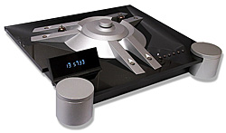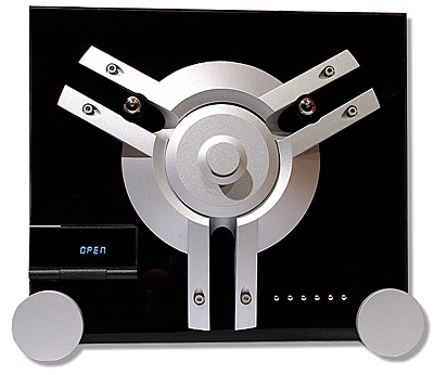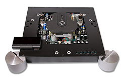 The CD player from Pathos Acoustics is a classic top-loader. Although at first glance it looks as if the disc is rotating freely on top like in Ancient Audio, actually it is manually closed by a aluminum lid, in which a standard plastic clamp is mounted, exactly the same as in drives with a drawer. The metal plate is not a clamp, like in gramophones, but just a stylish lid. As we mentioned in the beginning the device is very low. The enclosure consists of three main parts: a metal chassis below, a thick, blacked acrylic plate in the role of the top cover, and a cast aluminum element stiffening the construction and allowing us to put the disc directly on the drive spindle. In the role of the drive the Philips Pro-2. A part of the "kit" sold with the drive is a characteristic blue display, that was located adroitly in a retractable element. The size and contrast of the digits leaves much to be desired, and one should not count a such a comfortable readout as from Simaudio or EMM Labs. The device is supported by three spikes, two in front and one in the back (this setup is promoted among others by the French company YBA). The front spikes are being screwed into massive aluminum cylinders, that serve as feet and some kind of pillars for the whole device. As the spikes can be unscrewed, it is recommended to level out the player. The drive functions are accessed by small, chromed buttons, that are not described. Also on the remote, a nice, made from blacked acrylic, we will not find any symbols or writing, and although everything is described in the user manual, the user will get lost for long time - I was unable to learn them until the end of the usage of the device. On the back we find very nice XLR and RCA sockets (Endorphin is a balanced device) for the analog section, and an evenly nice (usually this element is neglected) digital coaxial output socket (the TOSLINK output is to the side of that). The power cable is detachable.