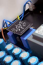 The inside shows nice, minimalist circuitry. Its bigger part consists of - as common in well designed equipment - the power supply. Behind the IEC socket there is an AC filter, but in contrast to commonly used no-name filters integrated in the socket - it is a special filter, designed especially for this unit. And though it looks quite common at first sight - a large suppressor and four capacitors - on it's top a label with the name Black Noise is located. It was prepared by an Italian company Systems&Magic. When I asked Fabio Camorani about this detail, he emphasized the role of this element:   "As you know, in the projects of AudioNemesis you can find some elements, crucial to the achieved results. One of those is the mains filter. We have designed our own solution, (we don't like the cheap standard solutions, used by other companies, regardless of the price of their products). I realized, that we know the owner of Systems&Magic, a company responsible for very well received Black Noise mains filtersWe asked him to design a filter for the DC-1. And so was born this one, a project created just for us. Systems&Magic was on exposition in Munchen, together with ourselves, on the second part of our display. The company is not known outside of Italy, but I am sure it will be. The filter in DC-1 is manufactured especially for us, and has some unique properties, from many points of view. I am not saying that the DC-1 sound depends only upon it! It is not true. I am just saying that this filter is a part of the sound, just like any other crucial component of this project." Behind the filter there is a medium sized, classic transformer, with two outputs - separate for the analog and the digital sections, and eleven capacitors. 2200 µF each - eight for the analog part, and three for the digital part. The latter is being fed by an IC stabilizer LM7805, the analog section is stabilized by discrete components. If we look at the board behind the digital input, it becomes clear that we do not deal with another mass produced unit. The input is buffered with a separation transformer of the Scientific Conversion make. Behind it the digital receiver and the D/A converter are placed - the only IC's in the device - with erased markings and blocks of HDG on top to minimize vibration. Those are hard, and look similar to ferrite - according to Fabio their structure is similar to those used by him in the AudioNautes products. In this section you can see many small ferrite rings - this must be a way to minimize the influence of noise. The rest of the circuit is based on transistors, also with erased markings and glued to black dices. The signal path is as short as possible, we have only 2 transistors per channel. From input to output a maximum of a few centimeters. Outstanding, not only for this kind of money, are the passive elements. In the signal path only the not inductive precision resistors of the company Dale were used, and in the output costly Vishay polypropylene capacitors. Such kind of make is not common, even in devices costing 10 000 zł. Main caracteristics: