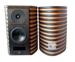 Finally, the long awaited stand mount speakers Ligeia reached me. The loudspeakers come in big, wooden boxes with the company logo on them – three woven ovals, that create the letter “M”. Packing the speakers out was a challenge. Although I’ve seen them on the show, and I knew how they are built, the size and weight surprised me. Because those are really big speakers, I think even larger than the already exceptionally big Davis Nikita. And they are heavier. The cause for that is the unusual way of manufacturing. Instead of composing the speakers from MDF, wood, etc, or bending them in a lute shape, like in KEF, the speakers are made from VERTICAL layers, with the chamber cut from inside after everything is glued together. The individual layers are from thick pieces of plywood (or another similar material, but – I am a layman when it comes to that). Every layer is finished in a different color – the natural light and a dark one, that make a characteristic Mythos “zebra” looks. My daughter called them “tigers”. So be it. Such a buildup is extremely time and effort consuming, not mentioning the costs. But it allows for creating a very rigid enclosure, that behaves like a wooden one (like in Sonus Faberze), and is as rigid as if it would be made from composite materials. We should add, that the loudspeakers from the Italian company Eventus Audio, are also made like this, but there different drivers and different visual concepts have been utilized. SOUND