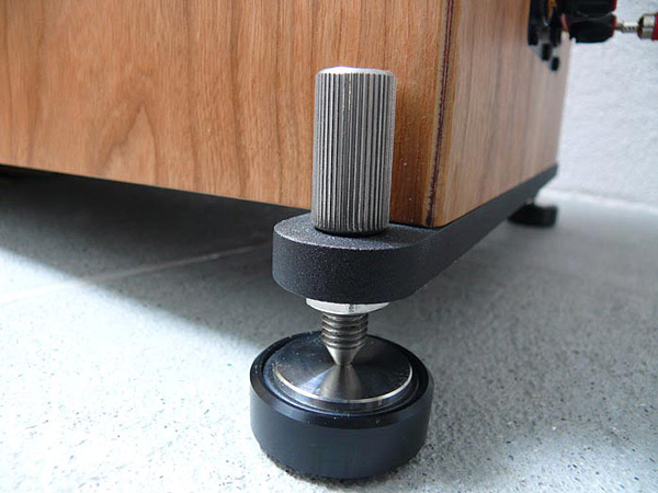 The externally adjustable tweeter horn module adopts an exposed metal mount. The loaner's only two items not finalized were the textured paint on the rear tweeter housing and the hair-line calibration sticker surrounding the locking bolt to assist precise physical offset as determined by a listening distance chart in the owner's manual.