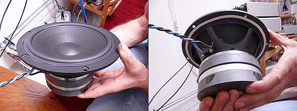 If you're into 'real' music like they play in your downtown clubs and not the old-fogey stuff whereby aging reviewers are often accused to miss the boat, the Big Fun 20 is perfect to get down and dirty with, not nasty and tiresome. That custom 8-incher sports a very stiff cone. Thomas brought a raw sample without attached spider, voice coil, dust cover or surround to make the point. It clearly goes very loud without losing its lunch and can't ever veer into metallic breakups by design. Nor is there a port to go huffing and chuffing. The tweeter is hornloaded to minimize excursion requirements. All these are preparations for SPL stability and an open invitation to rock out.