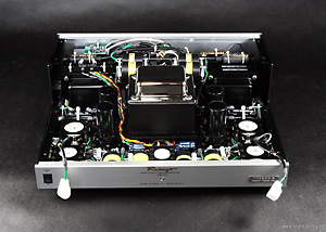 Discs used in the test: DESCRIPTION Although Reimyo is a small manufacture, their products do not resemble garage work in any way, so popular in the Country of the Cherry Blossom. Both units are packed in aluminum element, fitting together ideally, tightened together by many, very many screws. Interestingly, the preamplifier and the power amplifier are not fully coherent stylistically. They look similar, the enclosures are from scratched aluminum, in the middle of the front panel there is a signaling LED, indicating if the devices warmed up (anode current is not turned on with delay, this is just an indicator) and a painted logo. But the mechanical power switches differ (the one in the CAT-777 it is nicer), also the color of the screws differs – in the preamplifier those are gold, in the power amp black. Also the description of the model is different – in the power amp it is on a small plate screwed to the side, on the preamp only the logo is printed in the middle of the front panel. Despite this, the devices look nice, and can be liked. CAT-777 The preamplifier makes especially good impression. This is a big, high device, with a big, incredibly handy, volume knob on the right side, and two small knobs for setting the balance more to the middle, and a row of LEDs indicating the active one of the four inputs. This is not much… And actually this is it. But the placement of the knobs and buttons works out well.   On the back we’ll see high quality RCA sockets, looking like WBT, but I think, they’re from another manufacturer. There are also three preamplifier outputs, a grounding terminal (this is typical for Japanese devices) and an IEC socket. The inputs and outputs are placed symmetrical to the main axis and quite far apart. This suggests dual mono setup. It should be noticed, that even the closest sockets are so far apart, that I could not connect the grounds on the Harmonix cables – they were too short. The device is supported by wide cones – a Harmonix patent, tuning the preamplifier’s sound. But I saw on the pictures from a Japan show, that those got exchanged for the very expensive supports TU-606ZX. Inside the preamplifier looks even more impressive than on the outside. The CAT-777 is in fact dual mono. In the middle we have the power supply, separate for each channel, and to the sides, separated with thick shields, the amplifying circuits. It turns out, that the RCA sockets have fantastic connections inside. From those, with shielded cables (Harmonix) the signal goes to the input PCB. The input is chosen by sealed relays, packed in small metal shields. From there the signal goes to single Alps potentiometers (the small knobs) going through a medium sized (1µF) polypropylene capacitor Wonder InfiniCap Signature. From the smaller potentiometers the signal goes to the large, double one from Cosmos. I do not know, if it is good to have two potentiometers in the path – it is probably best to set the small ones to full and use only the big one. From there we go back to the tubes, mounted horizontally. In each channel we have two small double triodes – 12AU7, in a very good version from Matsushita (Japan) and in the input buffer the 12BH7A coming from the same manufacturer. The coupling is handled by the same capacitors as in the input, only bigger (4µF). There is no feedback loop. In the middle we have the power supply, which – like in all good products – occupies most part of the enclosure. Every channel has its own transformer and choke. The heating current is rectified and stabilized. In the anode power supply we have Philips ECG JAN 6X4WA tubes, a tube rectifier from military NOS supplies. Next to those we find tw big capacitors filtering the anode current and a few smaller ones for the heaters. On the input we have a 2Pi mains filter and Enacom, another brand from Combak Corporation. Then, on the output of the power supply, we have another two such filters. This part of the preamplifier is mounted on a PCB, but the signal section, except for the inputs, is mounted point-to-point. PAT-777   The power amplifier is built from the outside like other devices of that kind – on the top cover we have tubes – in the input a big, nice tube from Western Electric, the 310A, and in the output single, direct heated 300B triodes from the same company. Most interesting is the first one – this is a power pentode, very rare, working here in triode mode. The anode voltage is supplied by an external cable (Harmonix) and a cap visible on the pictures. Probably Mr. Kiuchi thought, that the 300B must be driven with high power, a thing heard here and there, In the middle, in front of a big power transformer there is a big rectifying tubem JAN 5R4WGB from Cetron. It gets quite hot, so there is a metal heat sink placed on the tube, screwed tight with three big screws. On the back we will find single RCA inputs – beautiful WBT – and speaker terminals from the same manufacturer – separate for 2, 4 and 8Ω impedances. In difference to other tube power amplifiers, here you have to unscrew the top cover. The bottom is a very thick aluminum plate, and all sections are mounted to it. The circuit is quite simple. As usual the power supply and output transformers take most space of the inside. In the power supply we have many filters (2Pi, Enacom, and a big industrial looking element). The filtering capacitors Elna Cerafine (separate for each channel and each tube) are coupled by polypropylene capacitors Wonder InfiniCap Signature. The heating of both signal tubes is rectified and stabilized. The circuit is mounted point-to-point. The IEC socket is from Furutech.