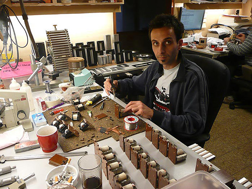 Source: APL HiFi NWO 3.0-GO From boyz to men  "As a result, 2009 will see a complete revamp of our line from speakers to cables; and exclusive support and growth of our dealer/distributor networks. Particularly in the US, we'd attempted direct sales, combining our own web portal with eBay and AudiogoN auctions. In hindsight, that was a mistake. Our forté is product design and manufacturing, not sales and marketing. If we had real talent at both, we could perhaps multi-task. But the truth for speakers is, you need to see, touch and experience them particularly when you're dealing with somewhat unconventional sonic values. Speakers need dealerships. Direct sales undermine that reality. That goes into the 'lessons learned' drawer. No more direct sales for us. "Also, there's been confusion about and critique of the Zu Sound. Some of it was self-inflicted because of poor communication on our part. Some of it could -- and now will -- be addressed with product refinements. As you know, one strongly dividing line in modern hifi is how speakers address the treble. We've always opted for a more old-fashioned midrange-centered balance with dense tone and great dynamics. Admittedly, this sacrificed certain elements of sophistication yet was accepted as a matter of priorities. But what if we could have it all? "Learning about Alexander Radisavljevic's work on high-efficiency ribbons and having collaborated with Frank of Tang Band on another ribbon over the last year suggested that we could implement a truly fast and distortion-free tweeter of superior extension and resolution. This would inject the missing element of upper harmonic sophistication without compromising our core focus on tone density and dynamics. Put differently, we would increase the resolution of our speakers -- resolution seems to be the term that captures today's focus -- without betraying our vintage roots and company identity. "This would address the most common complaints about the Zu Sound. Because this transition to ribbons is a quite radical departure for us, the time was also right to revive other ideas we'd shelved because on their own, they weren't sufficient to warrant complete model makeovers. Our work on the SuperPly gel-coated Presence hull and how we incorporated those lessons into the Definition 2 now could inform new cabinetry across the board. While redesigning the enclosures, we could implement certain form factor adjustments to make for an easier integration of Zu speakers in various living environments. We'd worked on refinements to our rebuilt Eminence widebander platform all along. We also had cable advances that asked to be implemented in the hookup wiring. In short, it was time to restructure the lineup and retire the Tone, Druid, Definition and Method models. Call it progressing from the spring of Zu to the summer of Zu.  "The Druid of course put us on the map. The first new-line model had to be its replacement. So we call it the Essence. It combines the next-gen 12-ohm widebander we had developed for the Presence with a custom ribbon and a complete pyramidal module inset from below into the visible cabinet hull point up. This creates tailored air compression prior to evacuation similar to a motorcycle exhaust. It helps to solidify and extend the low-frequency reach of the widebander. It required enhanced cubic volume which led to form factor changes inspired by the Definition. It also required advances in our manufacturing capabilities to do it cost-effectively. For the Essence, we had to overcome the perceived bass deficit of the Druid and address its high-frequency extension and energy. We needed a wood-finish option and grills. So there's a definite evolutionary connection with the Druid but also enough separation to warrant a new model. Accordingly, the name advanced by one letter in the alphabet. "You guys in the press have always referred to us as the Zu boys (chuckles). Our love of motorcycles and punk certainly played into that. But the fact is, we're fathers. I have four kids, Sean three. They're growing up quickly and help us mature along with them. A rebellious stance doesn't help penetrate the system you wish to change. Change has to come from the inside. To get inside -- and I mean literally, inside dealer show rooms and homes -- we have to eliminate resistance and hurdles. Our attitude created resistance. Certain choices we made in design and distribution erected hurdles. We can't and won't change who we are or what we are about. But we can certainly mature and implement what we've learned along the way to straighten out the path going forward. "One obvious element somewhat out of step with the revamp is the Presence model which we introduced just last year. It's really too new to be retired. We expect it to rise again in made-over form to complement the new range. We'll only have one subwoofer instead of two and that will run a single 12" woofer with Hypex electronics. Back to the Essence, the first model in the new range. In profile similar to the Druid, its cross section is an 11" square. Hence the new form factor is reminiscent of the Definition, not the shallow half depth from before. The new two-layer plinth fixes the optimal gap height which loads the circumferential slot at the bottom. This avoids the performance variations we ran into with the Druid. Its air gap height was critical to bass performance but variable in spike length and support surface (high-pile carpet vs. parquet floors for example). Regardless of spike length and floor details, the new twin plinth will always perform optimally without user concerns or adjustments.  "As the concept drawings indicate, the Grieve cartridge is a four-sided pyramid. As a function of geometry and space compression, it creates velocity acceleration of the back wave before it exits. The porous but hard foam of the pyramid allows sound waves to enter. Then they get absorbed by the core to not re-exit or at best, highly attenuated. The Griev