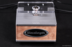 The tested unit, the model Cosecant v3, which first version was presented in 2004 during the CES, is more expensive than the Brick and brings some new things. First of all we get a new converter chip – earlier it was a 16-bit Philips (without an output digital filter), now we get a 24-bit (96kHz) Wolfson DAC – what allows for using hi resolution files. But this is by far not all – the converter is mounted on a separate PCB, called Numerator, and this can be exchange to a module identical as to the one in the Brick, named Transcendental. We received both for testing. After that we’ve got a tube output stage, here with a NOS ECC86 double triode, coupled to the RCA sockets by means of transformers, not capacitors. And finally – inside we got small switches, with which we can set the output as a balanced output, meaning a “floaing” ground (although this is still an RCA) or unbalanced. “Stereophile’s” measurements made during the test of this DAC (Art Dudley, Wavelenght Cosecant v3, „Stereophile”, June 2009, Viol. 32, No.6, s. 77-85) showed clearly, that the latter setting produces less noise. And this I can confirm with my listening tests – high resolution recordings sounded clearer, the instruments were better articulated, when the switches were set to unbalanced. We tested earlier: