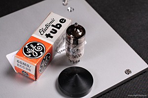 Cosecant v3 is the third version of this device. It can be classified as a classic DAC, but it has only a single USB input and is optimized for working with computers. The digital to analog converter Wavelength Audio Cosecant USB DAC is beautifully made. It stands out from the Brick, Cambridge Audio or even Benchmark. It has similar dimensions to the Brick, but there is a tube sticking out of it – a double triode 6GM8 (ECC86, here coming from General Electric), covered with an acrylic plate. Changing the tube is hence more difficult, but this has not a very big issue, as this is not done every day. The top and bottom plate are made from scratched aluminum in natural color, the front from a wooden element, and all the remaining sides from black varnished steel. The unit is supported on three feet. On the back we have splendid RCA sockets with the analog output, an USB input type B (rectangle type), socket for the external power supply and a green LED. The power supply is mounted in a small, but very solid aluminum enclosure. The cable is very thin, and does not make a lasting impression. To increase the lifespan of the tube, the digital circuits are powered on all the time, but the analog section is switched on only, when signal is present on the USB port. A small, white LED is lit when this happens.