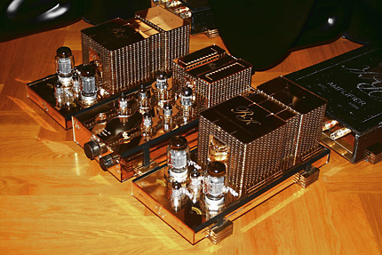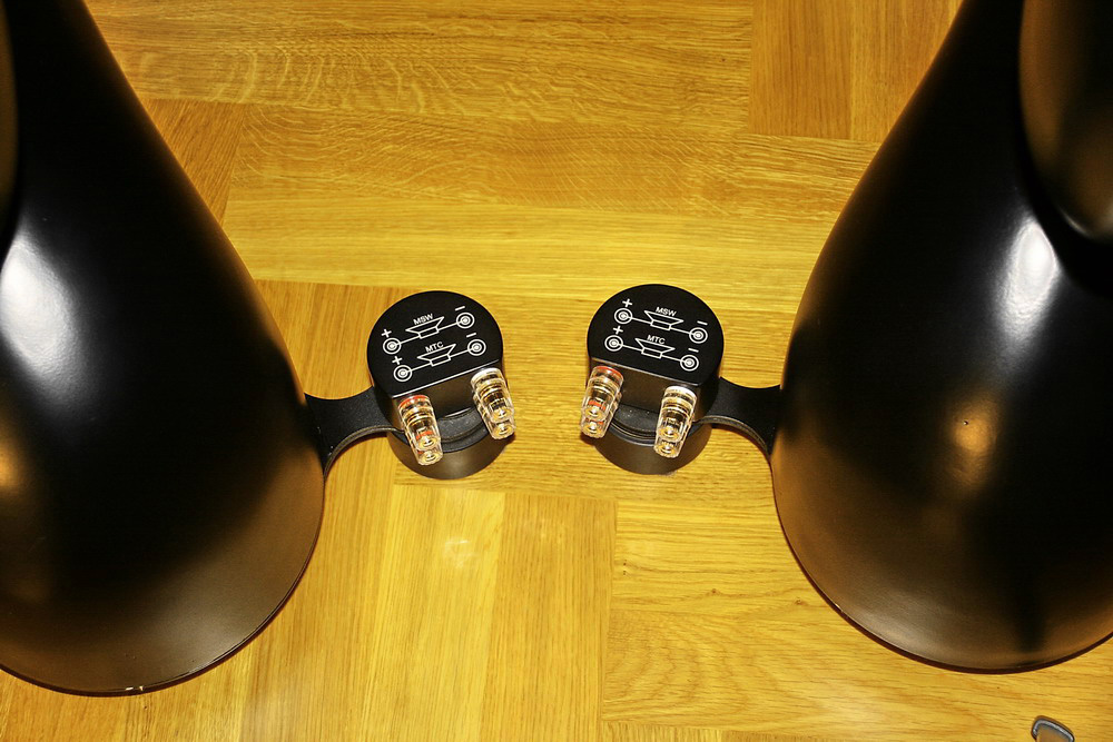 Górna płyta obudowy zwrotnicy jest grawerowana z oznaczeniem podłączeń od strony wzmacniacza i kolumny. Odseparowanie galwaniczne całego toru obu głośników łącznie ze zwrotnicą umożliwia niemal dowolną konfigurację zestawu przy połączeniu ze wzmacniaczem. W oryginalnej wersji kolumny pracują z monoblokami lampowymi TA-2 w układzie PSE z lampami KT88 widocznym na zdjęciu (zdj. 10). Charakterystyka impedancji zestawu (4 Ω) pozwala na wysterowanie go ze wzmacniaczy lampowych do mocy 100 W. Charakterystyka amplitudowo - częstotliwościowa przebiega liniowo w zakresie ±3 dB na przedziale 25 Hz-20 kHz.