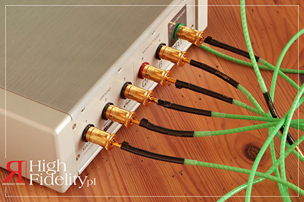 The QKore Wire mentioned in this section are cables that connect the artificial mass and devices. It could be done with any thick wire, but as a result of Nordost's tests, it turned out that the sound of the system is also influenced by the quality and type of grounding cable. Weird? - Not really. After all, it is a piece of wire that acts as an antenna - so it should be protected against RF noise. Moreover, the quality of the conductor itself also matters. That is why QKore Wire are high-class cables with mechanically tuned vibrations - it is one of the Nordost techniques, thanks to which the cable does not suffer from “microphonic” effect; which is a triboelectric distortion. The design also features a patented technique called Micro Mono-Filament, meaning that the conductor is wrapped with a band of FEP dielectric, creating a kind of "tube" with air inside - and air is one of the best insulators. The conductor itself is a silver plated OFC wire ("solid-core") of a 6N (99.9999%) purity, and the plugs are gold-plated BFA "bananas". The set includes two cables (both banana to banana and banana to RCA), for each additional one you will have to pay PLN 1599 or PLN 1799 for a 2-meter section, depending on the termination. For each additional meter, the price is PLN 670. | SOUND How we listened to it | The QKore listening session had to be divided into several stages. On the one hand, I wanted to hear how it affects individual components of the system separately, and on the other, how it can be used to "build" the sound step by step, adding individual devices one by one: |1| Power distributor Acoustic Revive RST-4EU Absolute: is one of the few products from Japan that does not feature a ground terminal. So I fixed the spade-terminated cable under one of the screws securing the top plate; after finishing the test, I will move it to the bottom, under the foot. It is worth connecting it as close as possible to the EIC socket, because this is where the protective wire is connected. |2| SACD player Ayon Audio CD035 HF Edition: also this device does not have a dedicated ground terminal. I tried three different cables with it - with BNC, LAN and USB terminations - it sounded best when connected via a BNC cable.