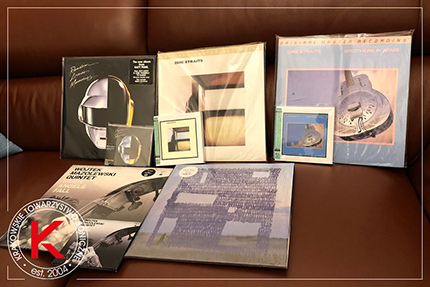 RYSIEK B. ⸜ At first I thought that the sound would be difficult to analyze with this album. The S-10 II player surprised me with its dynamics, energy and a kind of "efficiency" in playing, as if it was predisposed to this type of music. As I listened, my mind changed and I can finally say that the Aurender calmed down the sound and smoothed the edges of the sound spectrum. With CD and vinyl it was even a step better. With the LP, there is a climate, holography and warmth. Although it's not my music, I liked this version the most. As for the PCM-DSD conversion - Tomek and I nodded, because after converting files to DSD the tonal scale improved, the differentiation of sounds improved, the music came to life and became more spacious - so it seems I don’t agree with Julek. TOMEK FOLTA ⸜ I think that this device is still not broken-in enough and that after 100 hours of continues playing it would show us much more. As for me, there were no major differences in sound between Ayon players and the Aurender with the Ayon DAC. The accents were placed a bit differently, the Ayon in terms of the treble was much better, but in general - it sounded similar. I was surprised that the CD somehow didn't outperform the files. It was a little better, but not by much. The winner for me is vinyl. I liked the ease with which it played such densely produced music as well as its calmness - I didn’t want it to stop playing. After returning to the Ayon S-10 II and playing with upsampling, each time it turned out that switching from PCM to DSD did the sound "good". I know what Julian meant, but in this type of music "pumping up" and relaxing is a good direction. ⸤2⸣ DIRE STRAITS Dire Straits TOMEK FOLTA ⸜ I can see we agree - in our opinion, the vinyl from Mobile Fidelity, on two 180 g 45 rpm discs, blew the competition away. It offered a beautiful space, drive, rhythm - it was unbeatable. Now I also understood what Julian had said earlier - the Aurender with the Stratos offered a better depth than the Ayon S-10 II. The CD sounded a little better, but it was not a big change. RYSIEK B. ⸜ I, as opposed to Tomek, liked the Ayon S-10 II from the beginning, which sounded surprisingly well. It played with a clean, transparent sound, dynamically diversified. This feature from the previous session occurred again, i.e. the lack of stage depth. You can hear everything, a lot and clean, but the music doesn't go deep. So the rating is high, but with a downside. Aurender sounded grossly worse for me this time. The sound became one-dimensional, dull, lethargic and dispassionate, I would not like to listen to it at home. The SHM-CD Platinum brought the depth of space, but the overall sound was similar to Ayon. There was no big transition between the CD and the files played with the S-10 II. Well, as Tomek said, sound of the Mobile Fidelity remaster was a class of its own - I was speechless. It was probably the best sound I heard at Tomek’s.