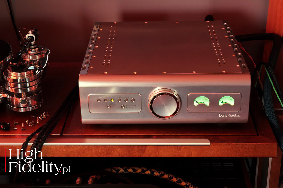 Interestingly, it was not the technical performance of the Momentum Mono that aroused interest, but the dimensions. And rightly so - the amplifier looked as if it was made of a single block of aluminum with invisibly attached copper heat sinks, and the whole was extremely compact. An element the „stole the show” was the central power meter located in a large, round window illuminated in green. Workmanship and finish were at the highest level. All this made the Dan D'Agostino brand very quickly become a brand recognizable all over the world. | PROGRESSION INTEGRATED TODAY, IN THE MOMENTUM SERIES, THERE IS a whole group of devices. Moreover, with time it was joined by the even more expensive RELENTLESS series and the cheaper - which does not mean cheap - PROGRESSION series. The integrated amplifier tested by us is its latest addition. THE LOOK Progression Integrated retains the look of the higher series, because its chassis is made of aluminum plates and blocks, but instead of copper heat sinks, there are aluminum ones. In the front there is a large volume knob of a slightly steampunk design. It resembles the knobs used by Musical Fidelity in its amplifiers, starting with the 1998 A3 integrated amplifier. On the left side there are input selection buttons with accompanying LEDs of various colors, and on the right side there are small green VU-meter indicators with an arm reminiscent of a those used in high-class watches. The indicators are also used when adjusting the balance between the channels. The device offers high output, because at 8 Ω we get 200 W, and at 4 Ω as much as 400, which informs us about a high-class power supply. The manufacturer indicates that it was possible, among others, thanks to the use of a power transformer with a "special" winding technique, used for the first time in the Momentum M400 amplifiers. Attention is also paid to the very wide frequency response, the same as in the Ayon Audio Spheris III preamplifier I use: from 0.1 Hz to 1 MHz with a decrease of 3 dB and from 20 Hz to 80 kHz with a tolerance of ± 0.5 dB. This is an exceptionally good achievement. FUNCTIONALITY The amplifier is already richly equipped and with some financial effort it can become an all-in-one system. The discrete preamplifier’s section is balanced, therefore the device in its basic version offers three balanced XLR inputs and one input of this type, which allows users to integrate the amplifier with a home theater system. There are also two RCA inputs, unbalanced, and a headphone output, unfortunately located on the back. For Progression Integrated one can buy two additional "cards" extending its functionality. The first is a PHONO PREAMPLIFIER. It will allow users to connect a turntable with a phono cartridge directly to the amplifier. The card offers a variety of cartridge loadings, from 50 Ω to 47 kΩ, in eight steps, and has a gain of 60 dB. To change the load, however, you need to unscrew the top cover and change the position of the DIP switches. This card costs PLN 10,820.   The second card adds DIGITAL INPUTS to the functionality of the device and one of an AUDIO FILE PLAYER. It is a card that is plugged in from the outside (the phono stage is plugged in), which offers three digital inputs for the audio signal - RCA, Toslink and USB - and one digital input for audio files - LAN (RJ45). RCA and Toslink inputs accept PCM signal up to 24/192, and the USB adds support for DSD signal from DSD64 to DSD256 (11.4 MHz). The digital inputs for the audio signal are part of a D/A converter. On the other hand, the LAN port is an input of a files transport, which together with the aforementioned "DAC" forms a complete audio file player. It allows you to play PCM files up to 24/192 and DSD files up to DSD256 from NAS disks. In addition, the device offers playback from streaming services such as Tidal, Qobuz and Spotify; in the case of Tidal with MQA signal decoding. The digital module costs PLN 27 060.   CONTROL Progression Integrated is controlled by a specially designed, aluminum remote control that connects to the device via Bluetooth - hence the appropriate antenna on the rear panel of the amplifier; the second, similar, is for Wi-Fi communication with the router. However, the amplifier can also be operated using a proprietary application, very similar to the MControl application that controls the file player in the MYTEK BROOKLYN BRIDGE. This is where you can access streaming services and NAS drives, as well as adjust the volume. Soon the device will receive ROON certification, then we will be able to control it using this application, which will be much more pleasant. The amplifier is available in silver or black. | SOUND HOW WE LISTENED The amplifier was placed on the top shelf of the Finite Elemente Master Reference Pagode Edition rack and was powered by the Siltech Triple Crown cable. I connected the Harbeth M40.1 speakers to it with a cable of the same brand. As the Ayon Audio CD-35 HF Edition SACD player was placed in the front, I couldn't use the rigid Siltech interconnects - instead I used Acoustic Revive Absolute XLR cables. The amplifier stood on its own feet. Recordings used for the test | a selection