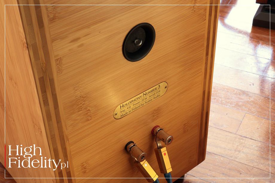 Attentive readers of the HIGH FIDELITY have probably noticed that the tested version is already the third one we listen to - the first one we looked at in 2017 (HIGH FIDELITY | № 153 ), and the second in 2018 (HIGH FIDELITY | № 171). The changes between the various versions consisted - first - in changing the cabinet material from MDF boards to bamboo plywood, and now time came for an even more perfect tuning of the crossover. The owner of AVATAR AUDIO, Cezariusz Andrejczuk, always keeps "searching" for a better solutions and is never fully satisfied. Hence the continual tweaks to its speakers. The company's offer is clearly different than that of the vast majority of manufacturers - just look at the photos. Their designs are based on the NOS paper cone drivers from the 1950s, 1960s and 1970s. These types of drivers have a relatively small excursion and a negligible diaphragm mass. Their operation was about conveying an impulse as quickly as possible - this type of speaker is very transparent to everything happening in the system before it and to what is happening to it. It is sensitive, for example, to the type/material of cabinet. Already with the first version of these loudspeakers, I wrote that it took Cezariusz a long time to chose the baffle thickness and shape, and then he experimentally determined where exactly a damping material, felt, should be glued to to minimize reflections. And then he spent as much time tuning crossovers. After changing the cabinet material, nothing changed, except that the whole work had to be redone - it is ultimately a completely different material mechanically . After refining the cabinet, it turned out that the crossover could be refined as well. The designer spent a lot of time on the latter, winding or unwinding the coils even by millimeters. As he says, each such change brings different phase shifts to the system, and they "are responsible for creating an illusion of the presence of musicians in the room". It's a job that never ends. A few simple words… CEZARIUSZ ANDREJCZUK HOLOPHONY NUMER 3 BAMBOO Mk II is a new version of the model that has been known for 7 years. The only difference compared to the previous one is only - or as big as - a completely redesigned crossover. As in last year's Holophony Number 2 Mk II model, an intensive work on equalizing the crossover’s bandwidth resulted in a significant enlargement of the sound stage with an increase precision of the location and separation of phantom images, greater tonal saturation, increased resolution and micro-dynamics. And because - as I have emphasized several times - the crossover is responsible for at least 2/3 of the sound quality of the loudspeakers, the Mark II version can be considered a new Holophony model. ♦ | HOLOPHONY NUMER 3 Mk II WE HAVE MET WITH THE NUMBER 3 already twice. Constant upgrades resulted in significant changes to the sound, although the drivers used in them remain the same. Both belong to the group of NOS products, i.e. they are new, but they were produced many years ago and have not been produced for a long time. Both feature paper cones and both are cone drivers. They also have modern suspensions - the tweeter with a diameter of ø 100 mm, made of paper, and the mid-woofer with a diameter of ø 250 mm, made of rubberized canvas. The Number 3 Mk II loudspeakers are two-way designs with a bass-reflex cabinet, with the port located on the rear panel. It is closed with plugs that - if we want to deepen the bass - can be taken out. However, Cezariusz believes that by doing so one worsens the impulse rendering, and thus the sound. The precision is also improved by decoupling the loudspeakers standing on four feet. These are magnetic ball feet with cork washers. The crossover is extremely minimalist. It took the designer several years to reach this state; there are only three elements in it: a coil for the mid-woofer, a capacitor and a resistor - in the tweeter path. The crossover in these loudspeakers is closed in a separate box inside the cabinet, and the box is decoupled from it. In order for such a reduction to be successful at all, both elements are selected with a precision that could be called "exaggerated", if not for the effects: the loudspeakers are extremely resolving and each, even slight, inaccuracy results in a deterioration of signal processing. | SOUND HOW WE LISTENED The tested loudspeakers stood in the place where the Harbeth M40.1 usually stand, 236 cm from each other, counting from their center, and 258 cm from the listening position, counting from the center of the tweeter. They were toed in in such a way that the tweeters were aimed directly at the listening position. The speakers were set up personally by the owner of the company. I used two amplifiers to drive them - a separate system, consisting of the Ayon Audio Spheris III preamplifier (tube) and the Soulution 710 power amplifier (transistor) and the LEBEN CS600X integrated amplifier (tube). For the Leben, I used a Western Electric speaker cable from the 1940s (NOS). As it turned out - it was a much better match. Recordings used for the test | a selection