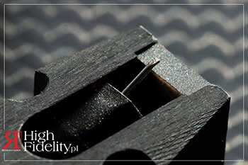 ⸜ Highly visible stylus cut in the tested Shelter Harmony cartridge The 'line contact' type also includes Shibata, but also other ones - on this basis other companies have developed their own types of ultra-precise styluses: Shibata (JVC, made by: Namiki Jewel) | Pramanik (Bang and Olufsen) | Quadrahedron (Pickering and Stanton) | Sterehedron (Pickering and Stanton an improved Quadrahedron version) | Van den Hul (Van den Hul) | Hyperbolic (Shure) | Hyperelliptical (Shure) | Special Elliptical (Denon) | Parabolic (Elite Electronic Industries – EEI) | Paroc (Weinz) | Fritz Gyger (Fritz Gyger) | Microridge – (manufacturer: Namiki Jewel) | Microline – (Audio Technica) | SAS – (Jico –Super Analogue Stylus is a variation of the Microridge). ♦ ⸜ More: 1. AUDIOKARMA.org; dostęp: 23.04.2021. 2. All you need to know about cartridges: Stylus types; PDF file, accessed: 23.04.2021. ALREADY A FIRST LOOK AT THE HARMONY SUFFICE to conclude that we are dealing with a much more sophisticated product, different than the other cartridges from this manufacturer. The main difference is in how the body is made. The Shelter’s flagship model uses a carbon fiber reinforced composite (so-called "dry layup") with a polymer cover (CFRP = Carbon Fiber Reinforced Polymer) for the main body. According to the press release, the CFRP provides “excellent acoustic characteristics and fits perfectly with the newly designed motor assembly”. And next: