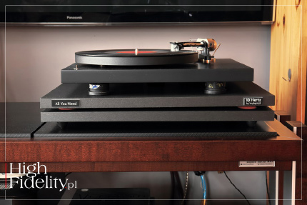 Let me add that the offer also includes a more expensive platform, a luxury version. It is made not of MDF boards, but natural Badi wood with a very dense, grain-free structure, waxed and oiled. The result of such a selection of materials is to be, as we read in the company materials, "high acoustic absorption". ▌ SOUND ⸤ HOW WE LISTENED The All You Need anti-vibration platform was placed on the Finite Elemente Master Reference Pagode Edition MkII anti-vibration rack costing a hundred times more than the reviewed item. The basic question then was whether I was killing any chances of the reviewed product to prove its worth. However, if we look at the parameters given by both manufacturers, we will see that their most effective operating range does not coincide - for the platform it is around 10 Hz, and for the rack the range is from 20 to 950 Hz. In any case, the platform stood on its own feet, on the top of the carbon fibre shelf. I tested it with the relatively inexpensive PRO-JECT DEBUT PRO turntable, costing less than PLN 3,500. It was such a graceful element of the test as it sounds great, and besides, it was exactly the type of design the tested platform was developed for - with a light and non-decoupled base. I extended the test with other elements that I tried and listened to with this pair, for example the Acoustic Revive RST-30 turntable mat. Records used for the test | a selection ⸜ AL DI MEOLA, JOHN MCLAUGHLIN, PACO DELUCIA, Friday Night in San Francisco, Philips/Impex Records IMP 6031-45, 2 x 180 g, 45 RPM LP (1981/2020). ONE OF THE THINGS that can be said about the tested platform right away, without listening to the details for a long time, is that it changes the sound significantly. There is no question of - "a little", "maybe", "but", "in some respects", but simply - significant. We sit down, cue in a record, any one, it really doesn't matter what kind of music or pressing it is, and we immediately hear the change. Wojtek Padjas's platform does not even change the sound itself - though that is what it is all about - but something deeper, as if it could influence something fundamental that the sound is built upon. So we do not actually have an impression of a some sort of correction being carried out in front of our eyes/ears, but rather what we get is a completely new presentation, in which the change in question has happened somewhere earlier, thanks to which we receive a completely new performance. Ultimately, however, it is about changes and corrections and I have to present them as such. And the fundamental change that the All You Need platform brings to the sound is bringing order to its structure. My point is that although the elements we usually talk about do change, such as timbre, dynamics, etc. - which I will come back to in a moment - they are, in my opinion, secondary changes. The order in question causes a better flow of music, it also flows in a denser, more freely way. The Pro-Ject turntable acquired some sophistication with the tested platform, and its sound was smoother. The double bass from the THE MONTGOMERY BROTHERS Groove Yard without it was a bit stronger in its mid-range, which made it seem bigger. After decoupling the turntable, this "protuberance" - as it turned out - disappeared, and its place was taken by a much more tonally balanced image of this instrument - its attack had a less "square" cut and more natural softness, hence the sustain and the elements that make it rich were heard more clearly. The change was transformative, that is, from a very good reproduction - the Pro-Ject turntable is excellent - it transformed into almost refined one, which does not happen at this price level. It seems to me that the scale of changes brought about by the platform was greater than if we changed the turntable or cartridge to a higher model. What turned out even better with two albums in which the bass creates the "presented world", and is not just an addition to what is happening in the band above - with BRENDAN PERRY’s Ark and KRAFTWERK’s Tour De France. Soundtracks. In both cases we deal with a very low, electronically generated bass of constant intensity, which is much more difficult to control than the sound of natural instruments, which has an impulse character varying in time. The tested platform resulted also in a much deeper image in terms of tonality, also in the low range. The bass was softer with it, and at the same time better defined. As paradoxical as it may seem, it is not - I get something like this every time the resolution of the sound increases. And that's what All You Need does, otherwise I can't explain it. The sound with it is richer with sounds that build a more nuanced, truer, and thus emotionally deeper presentation. That is why listening to the FRANK SINATRA’s The Voice, released in 1955, which collected the artist's recordings from the 1940s was so pleasant. Originally recorded on 16" transcription discs and then re-recorded on a tape from which the aforementioned album (first it was released on two 10” discs) was prepared, sounds incredibly good. The platform gave these recordings the depth they need, opened them up, but also blocked the slight brightening of the upper midrange, which the Pro-Ject itself didn’t do, because it could not cope - even several times more expensive turntables could not do that. The platform did not change the basic features of this design, and yet Sinatra sounded more natural, more credible with it. It was as if I was one step closer to the source of the signal. Once heard, it stayed with me until the end of the test, and it turned out to be particularly strong with the unusual, 78 RPM record Oh Lady Be Good/Smile pressed in current times. | Our recordings ⸜ MICHIKO OGAWA Oh Lady Be Good/Smile Ultra Art Record UA-1004