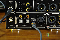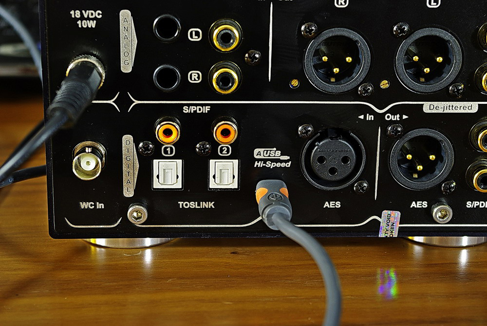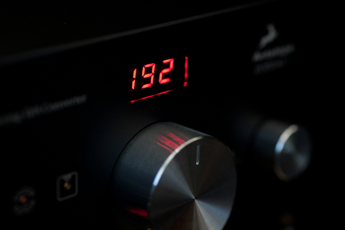 Na froncie urządzenia znajduje się niewielki, czerwony wyświetlacz, który pokazuje częstotliwość próbkowania odtwarzanego materiału (w czasie odtwarzania), głośność (w trakcie jej zmiany), oraz z którego wejścia korzysta się w danym momencie (wyświetla się zanim podamy sygnał na wejście). Pod wyświetlaczem znajduje się duża, aluminiowa gałka regulacji głośności, obok niej mniejsza służąca jako potencjometr wzmacniacza słuchawkowego. Pod nią znajdują się dwa gniazda słuchawkowe akceptujące duże jacki. Pod głównym potencjometrem znajduje się przycisk „mute” (wyciszenie). Obok trzy kolejne przyciski – włącznik, selektor wejść, oraz przełącznik trybu mono. Ponad nimi czerwony wskaźnik pracy urządzenia, a nad nim trzy białe diody, które (od lewej) wskazują, że DAC otrzymuje sygnał, że podłączony jest zewnętrzny zegar, oraz że urządzenie pracuje w trybie mono.