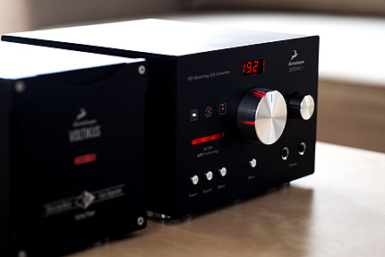 Jak się przyjrzeć dokładniej ofercie Antelope i trochę poczytać, to można się dopatrzeć między wierszami sugestii, że Volticus jest w zasadzie przeznaczony dla topowego Golda. Oczywiście można go zastosować z każdym przetwornikiem z oferty tej firmy i wniesie on pewną poprawę dźwięku. Zważywszy jednak na jego cenę, zawsze aktualne będzie pytanie, czy lepiej kupić, powiedzmy, Zodiaca+ z Volticusem, czy Golda bez dedykowanego zasilacza. Ponieważ miałem w domu jednocześnie wszystkie urządzenia, więc mogłem zrobić sobie krótkie porównanie. Na jego podstawię mogę powiedzieć, że gdybym miał dokonać wyboru pomiędzy wskazanymi powyżej możliwościami wybrałbym bez wahania Golda (a kosztuje on tyle co Zodiac+ razem z Volticusem). Oczywiście, po pierwsze, daje to możliwość upgradu poprzez zakup Volticusa w późniejszym terminie, a po drugie jego brzmienie z moim systemem, oraz tymi, które akurat miałem w domu na testach bardziej mi się podobało. Gold grał jakby swobodniej, z jeszcze ładniejszą barwą, którą doskonale łączył z ową „studyjną” analitycznością i detalicznością. Wydaje mi się więc, że Zodiac+ jest bardzo dobrą ofertą sam w sobie, ale gdyby rozważać go razem z Volticusem to chyba lepiej jednak zdecydować się od razu na Golda. Choć z drugiej strony to jednak zależy od reszty systemu – najlepiej więc spróbować samemu. Na koniec jeszcze kilka słów o Zodiacu+ jako słuchawkowcu. Niestety w czasie gdy testowałem to urządzenie miałem do dyspozycji tylko słuchawki Ultrasone Proline 2500 (co po testach znakomitych HiFiMAN-ów HE-6 było bolesne samo w sobie), które grają dość precyzyjnie, delikatnie rozjaśnionym dźwiękiem, przez co chyba nie są najlepszym możliwym partnerem dla bułgarskiego wzmacniacza. Pokazało to bezpośrednie porównanie z moim Schiitem LYR (jako słuchawkowcem, z Zodiakiem+ jako „dakiem”), który choć też daje dźwięk precyzyjny, szybki, transparentny, to jednak lampki na pokładzie robią swoje sprawiając, że dźwięk jest pełniejszy i lepiej dociążony, co ewidentnie było bardzo potrzebne Ultrasonom (być może ogromny zapas mocy amerykańskiego wzmacniacza tez robił swoje). Gdyby użyć innych słuchawek, to wynik starcia mógłby być zupełnie inny – tyle, że musiałyby to być słuchawki grające zupełnie inaczej. Podsumowując, już ostatecznie: Zodiac+ to świetnie spisujący się, zarówno po USB jak i po koaksjalu, DAC (innych wejść nie miałem okazji wypróbować, ale czemu miałyby grać przez nie gorzej?). Nie wstawiłbym go tylko do już jasno, analitycznie grającego systemu, bo mogłaby nastąpić kumulacja detaliczności/przejrzystości/analityczności, po której zniknęłaby muzyka, a zostało jedynie rozkładanie dźwięku na czynniki pierwsze (teoretyzuję z braku takiego systemu, ale tak mi się wydaje). W większości zrównoważonych, ale również grających lekko ocieplonym dźwiękiem systemów bułgarski przetwornik wpasuje się bez pudła. Będzie szybko, dźwięcznie, detalicznie, ze świetną kontrolą i tą fantastyczną przestrzenią. Pamiętać trzeba jeszcze o jednym – to urządzenie bezlitośnie obnaża słabości nagrań – na tyle, że tych słabszych właściwie nie da się słuchać z przyjemnością. BUDOWA Zodiac+ to środkowa pozycja z oferty przetworników cyfrowo-analogowych bułgarskiej firmy Antelope Audio. Gwoli ścisłości – producent klasyfikuje to urządzenie po prostu jako DAC, a de facto może ono również pełnić rolę przedwzmacniacza, wzmacniacza słuchawkowego, oraz dejittera dla innych urządzeń cyfrowych. Urządzenie sprzedawane jest standardowo w kolorze czarnym, aczkolwiek z tego. co widziałem Golda (najwyższym model) można zamawiać nie tylko ze złotym frontem, ale i ze srebrnym lub czarnym – niewykluczone więc, że prędzej czy później również i Zodiaca+ będzie można zamówić w innym kolorze. Testowany egzemplarz był cały czarny, podobnie jak otrzymany przez mnie Volticus. Urządzenie jest co prawda stosunkowo niewielkie, ale robi bardzo pozytywne, solidne wrażenie.