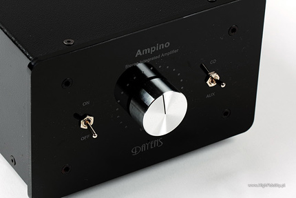 Ampino serbskiej firmy Dayens to wzmacniacz zintegrowany, półprzewodnikowy. Ma tylko dwa wejścia liniowe i jedną, jedyną gałkę. Przednią ściankę wykonano z płata akrylu. Resztę obudowy wykonano z aluminiowych blach – rzecz w tym przedziale cenowym endenemiczna. Na przedniej ściance mamy aluminiową gałkę siły głosu oraz dwa hebelkowe przełączniki – jeden to wyłącznik sieciowy, drugim zmieniamy wejście. Opis przedniej ścianki wykonano techniką frezowania, dzięki czemu napisy będą widoczne wyjątkowo długo i nie będą wskaźnikiem zużycia urządzenia.