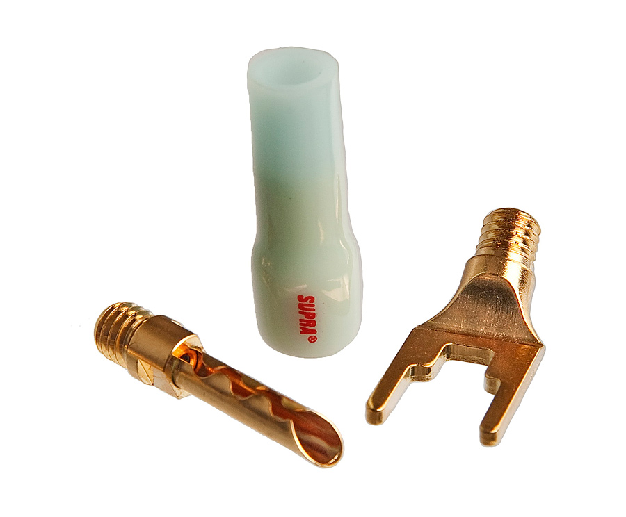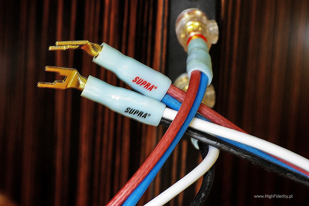 Otrzymany do testu egzemplarz zakończono firmowymi wtykami Supry Combicon Crimp, które pozwalają na wymienne użycie końcówek w postaci bananów BFA lub widełek.