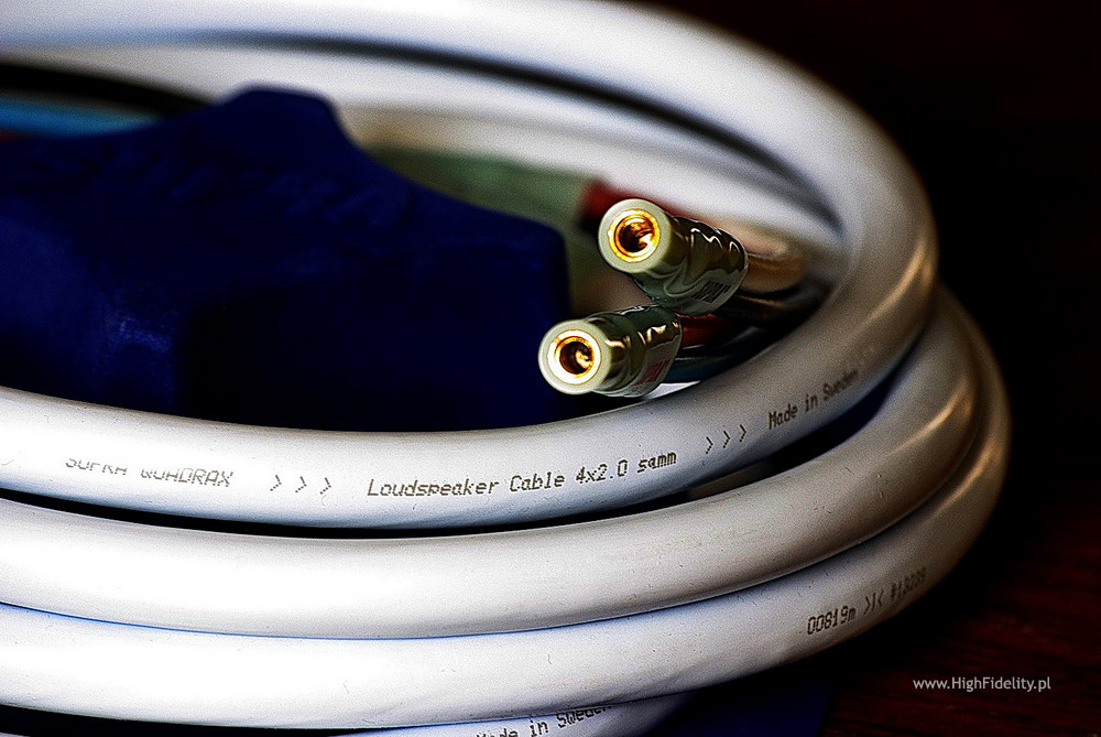 To niesamowicie przejrzysty, czysto, rozdzielczo i detalicznie grający system – mówiąc szczerze lepiej nadający się (w sensie wyższej klasy) do testowania sprzętu niż mój własny (bo też i kosztuje sporo więcej). A ponieważ, jak już wspominałem, słuchałem go ponad tydzień przed przyjazdem kabla do testu, więc uznałem, że znam jego brzmienie na tyle dobrze, by zrobić wyjątek i nie wpinać Supry do mojego systemu, tylko w wyżej opisanym zamienić głośnikowy LessLoss Anchorwave na Quadraxa.