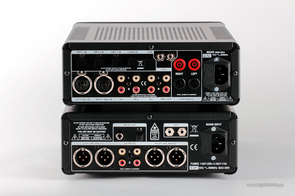 Czego się można po nich spodziewać? Po CD dedykowanego transportu firmy TEAC i podwójnych wyjść analogowych. Te ostatnie pozwalają na purystyczne połączenie urządzeń w systemie bi-amping, korzystając z dwóch identycznych wzmacniaczy zintegrowanych. W zarządzaniu tym połączeniem, a także wszystkimi innymi, także hybrydowym – kina domowego i stereo – pomaga specjalnie opracowany przez firmę protokół LIPS (Leema Intelligent Protocol System), opracowany przez założycieli firmy (która powstała w 1998 roku), panów Mallory’ego Nichollsa oraz Lee Taylora. Wzmacniacz jest niewielki, a ma dużą moc. Jak się później okaże, jego podstawą są moduły końcówek mocy pracujących w analogowej klasie D.