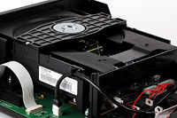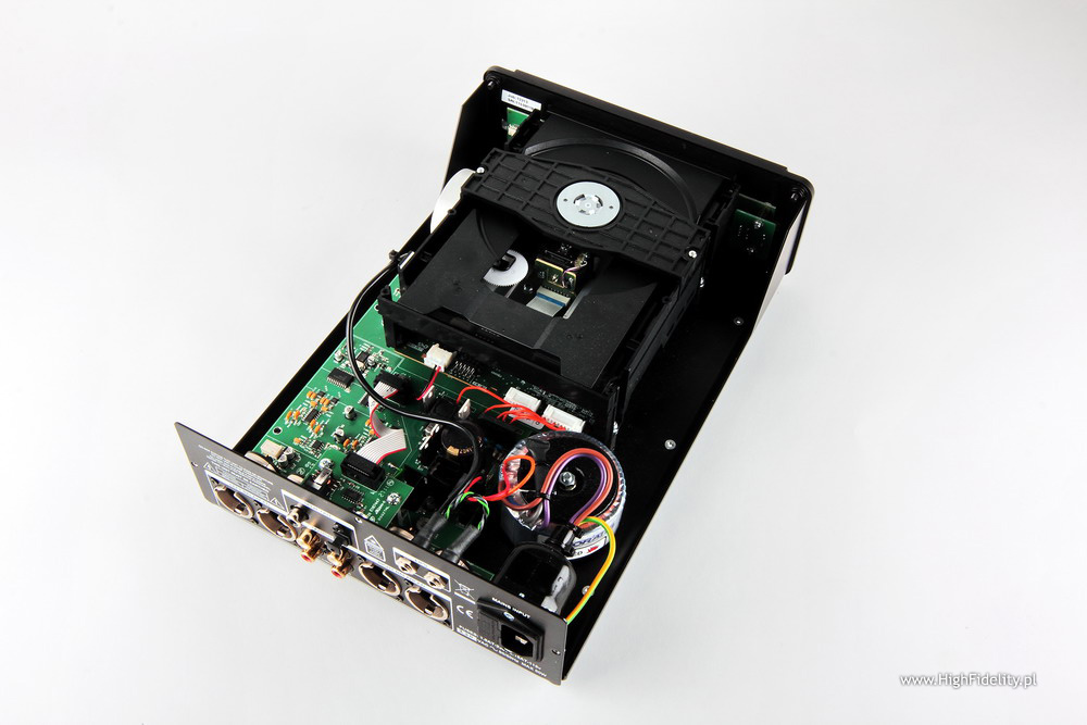Większą część wnętrza zajmuje napęd – to model CD-5020-AAT japońskiej firmy TEAC. Jest plastikowy, a pod spodem jest zintegrowana z nim płytka ze sterowaniem.