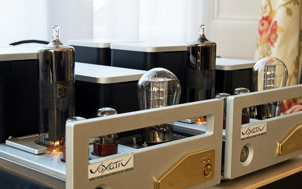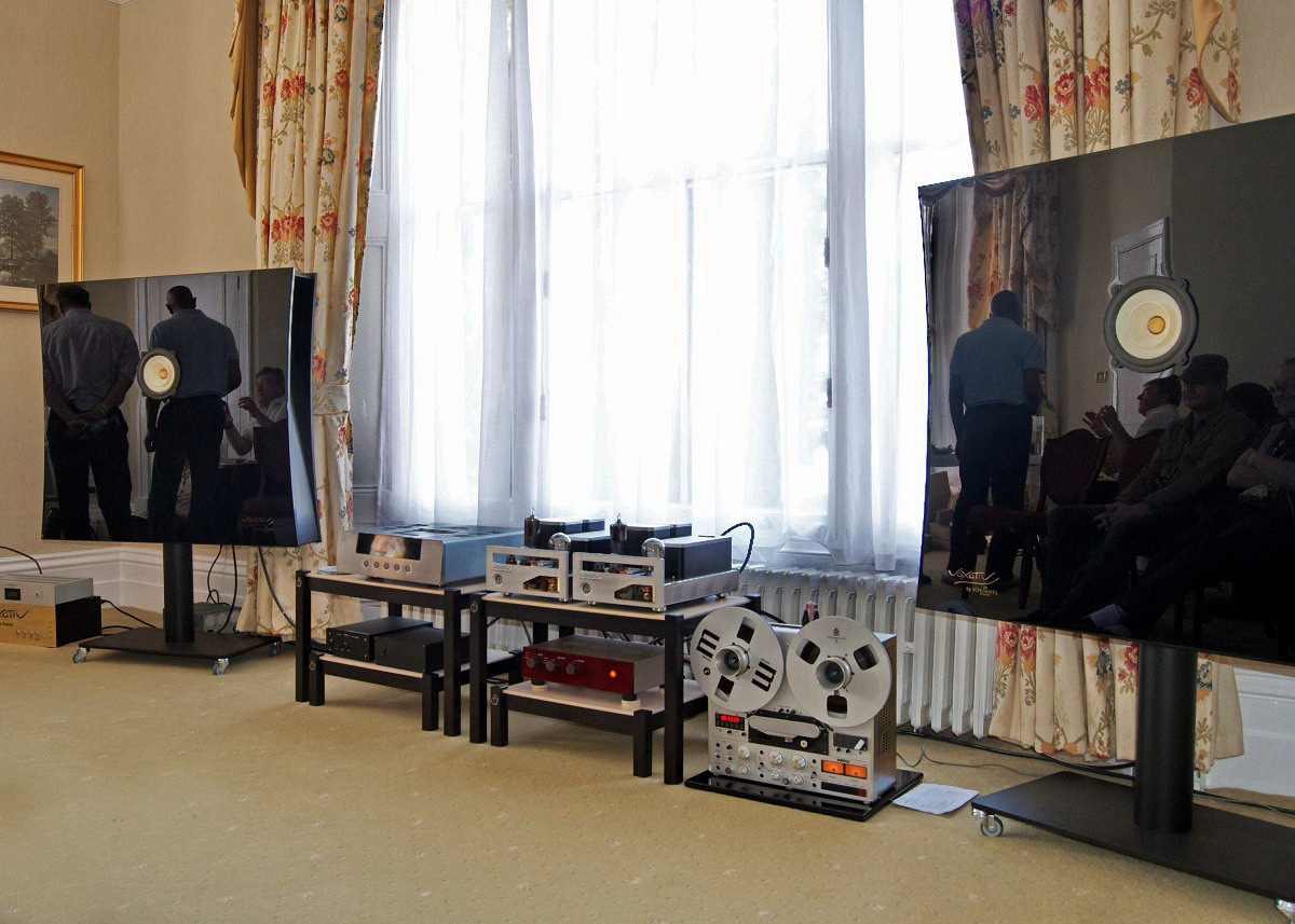 Kolumny sterowała para 18-watowych monobloków SE na bazie triody Erog 845 z lampami o niecodziennym wyglądzie, również projektu Ines. Przedwzmacniacz, to znany mi z systemu Johna Japanese Sound Parts, subtelny i muzykalny oparty na podwójnej triodzie ECC82. Źródło zaś stanowił magnetofon szpulowy firmy Revox, urządzenie nieczęsto dziś spotykane w systemach audio, a zdolne podać sygnał o wyśmienitej jakości.