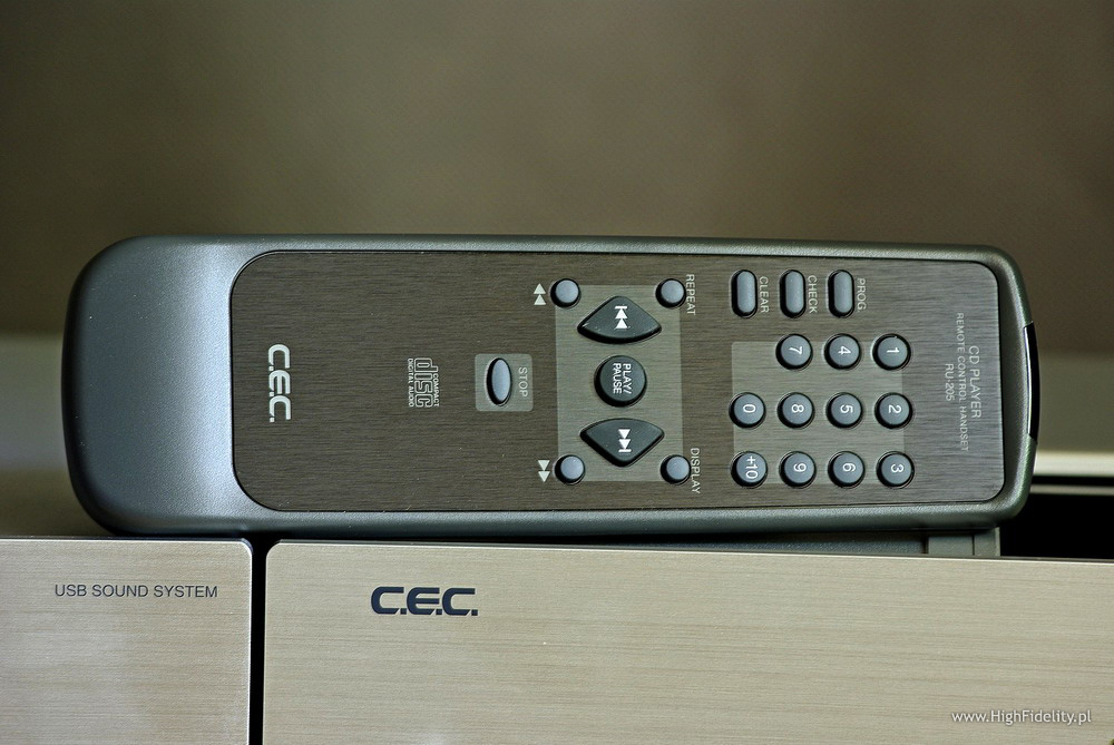 O ile wygląd urządzeń CEC-a powoli ewoluuje, o tyle w pilot zdalnego sterowania do transportu wygląda mniej więcej tak samo, jak ten od odtwarzacza 51XR (o ile pamiętam oczywiście). Dość duży i w miarę wygodny w obsłudze, tyle że wykonany z plastiku, mimo że aż prosiłoby się o metalowy, żeby pasował wizualnie do sterowanego urządzenia.