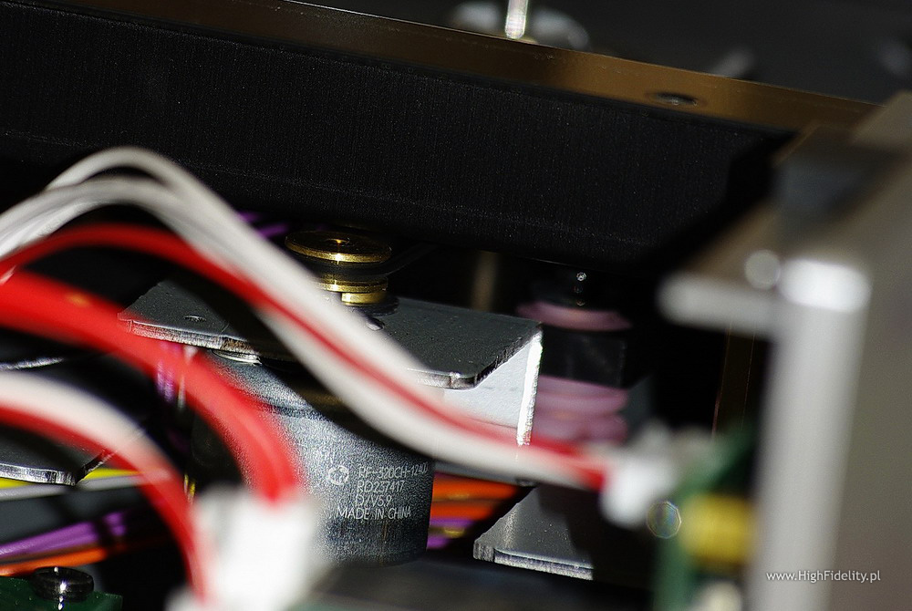 Wewnątrz znajduje się dość solidnie zabudowany mechanizm paskowy, z dwoma paskami – takie rozwiązanie stosowano do tej pory jedynie w droższych modelach. W osobnej, ekranowej komorze umieszczono zasilacz urządzenia.