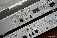 Nowy przetwornik cyfrowo-analogowy z wyglądu przypomina natomiast najbardziej... wzmacniacz z serii 3800. Dwie spore gałki po bokach, wyświetlacz umieszczony centralnie (acz większy niż we wspomnianym wzmacniaczu) i podświetlany na niebiesko wyłącznik. Wyświetlacz jest znakomity – wyświetlane znaki są duże i bardzo łatwe do odczytania nawet z kilku metrów. Chyba w końcu jakaś firma dorównała pod tym względem kanadyjskiemu Moonowi. Na tymże wyświetlaczu wyświetlane są informacje o tym, z którego wejścia korzystamy oraz jaką częstotliwość próbkowania przez to wejście DAC otrzymuje. Na froncie znajdziemy jeszcze gniazdo słuchawkowe fi 6,3 mm (duży jack), gniazdo USB (mini, typ B), oraz wejście optyczne (mini) – te dwa ostatnie zapewne głównie do podłączania urządzeń przenośnych. Wspomniane dwie duże gałki to obrotowy selektor wejść (wykonując niewielki ruch przeskakuje się na kolejne wejścia, nazwy pojawiają się na wyświetlaczu) oraz regulacja głośności, która działa zarówno dla wyjścia słuchawkowego, jak i dla analogowych wyjść z regulowanym poziomem sygnału, użycie których pozwala na bezpośrednie sterowanie końcówką mocy.